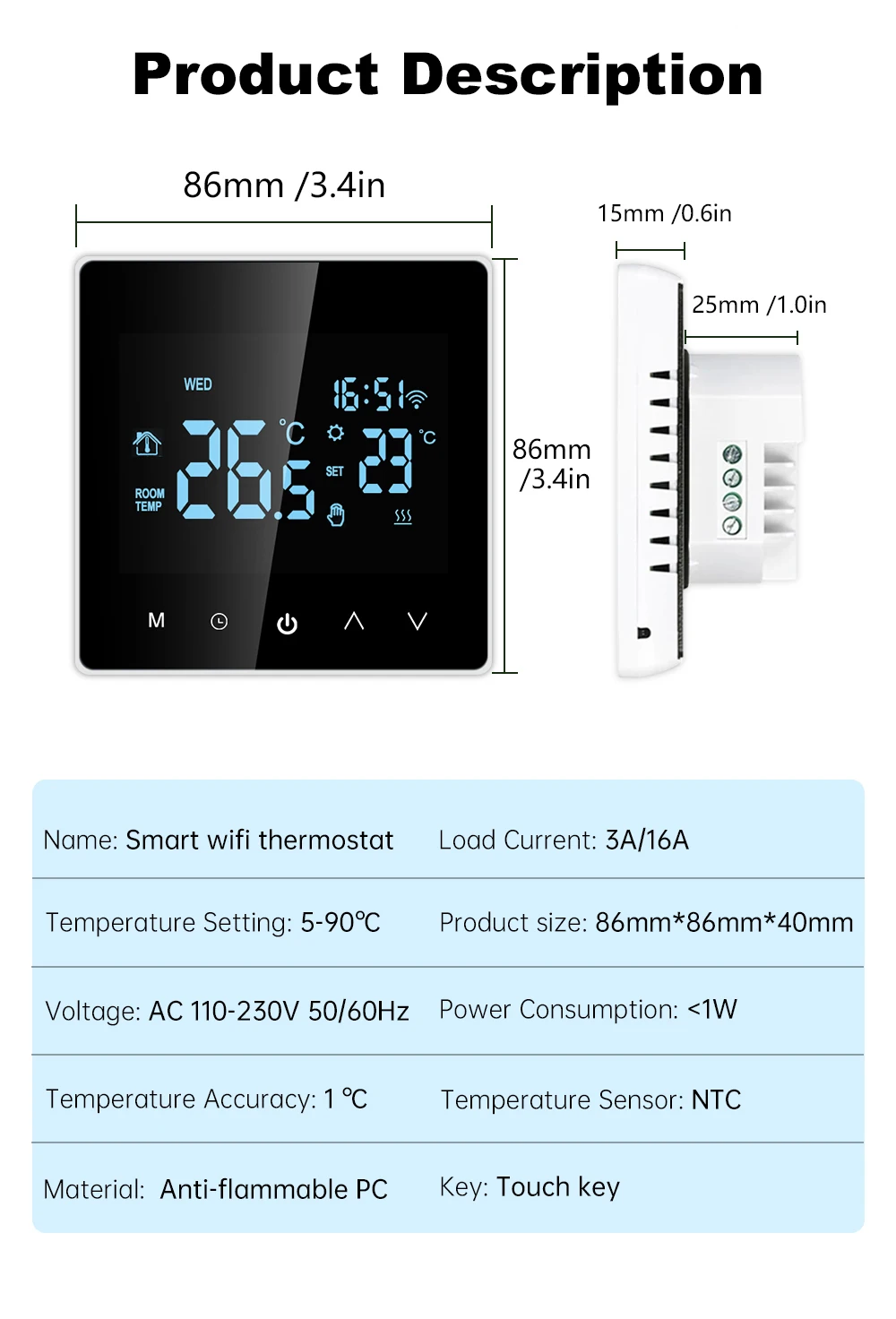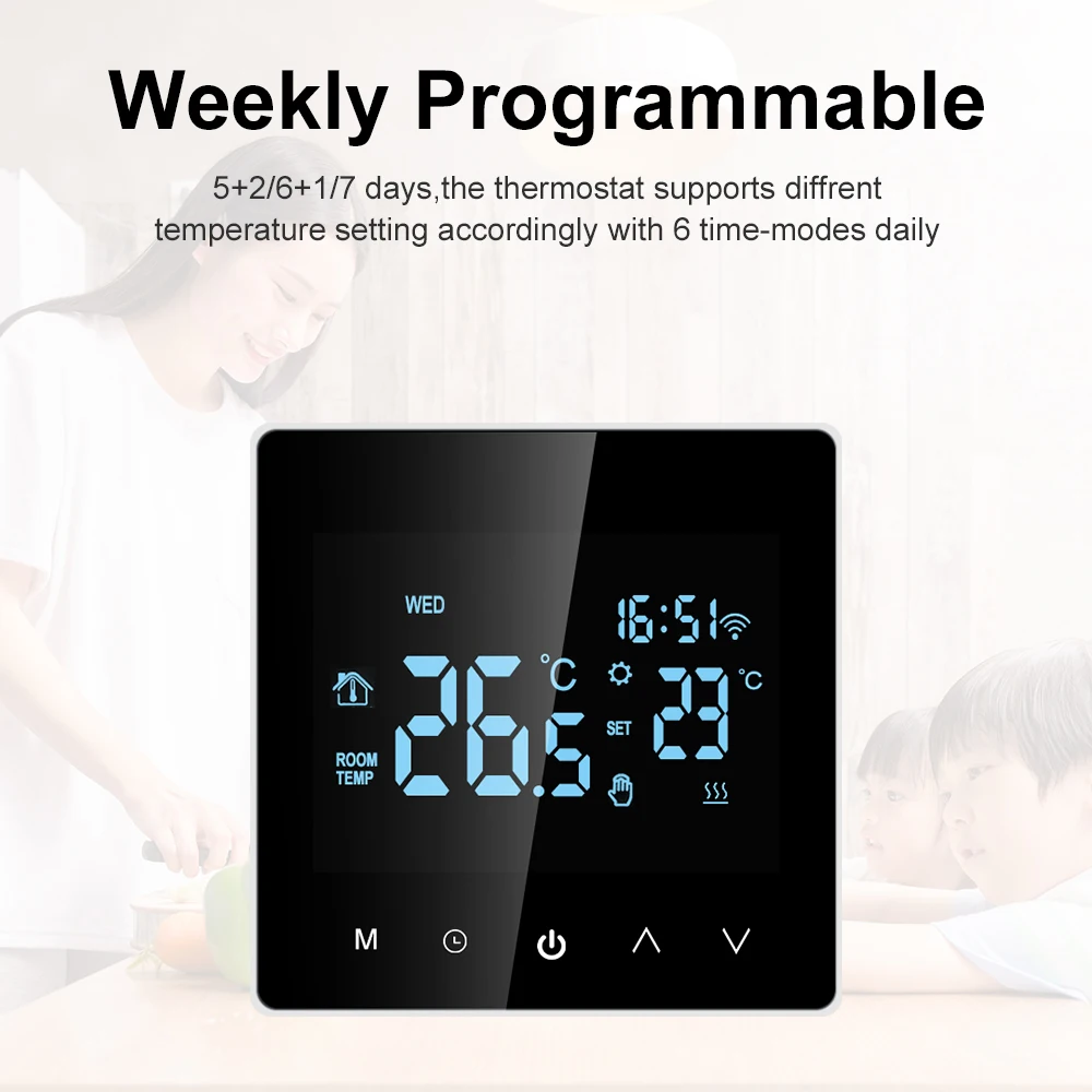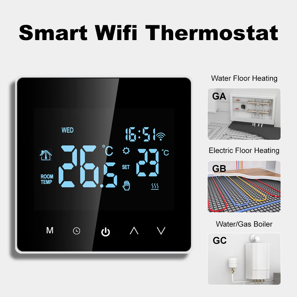 투야 스마트 와이파이 온도 조절기 전기 바닥 난방 물/가스 보일러 온도 조절기 LCD 터치 온도 제어 구글 홈 알렉사