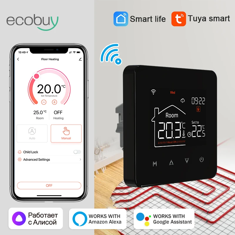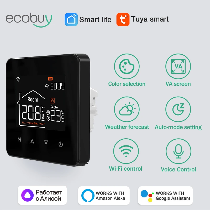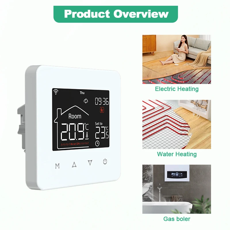 Tuya WiFi 스마트 난방 온도 조절기 전기 바닥 난방 물/가스 보일러 온도 컨트롤러 조절기 난방 케이블 Alexa Google 홈 음성 제어