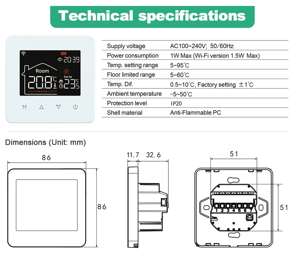 전기 바닥 난방/온수 난방 시스템에 적합합니다. 가정, 사무실, 쇼핑몰, 호텔 등에 적합합니다.