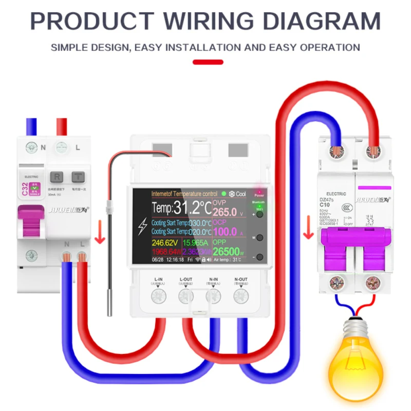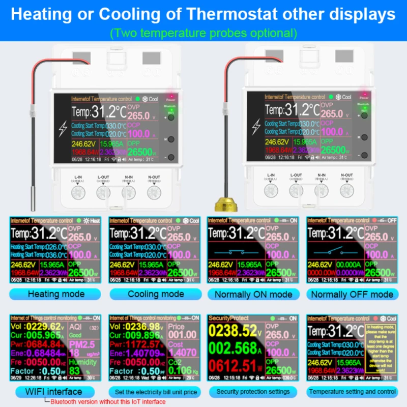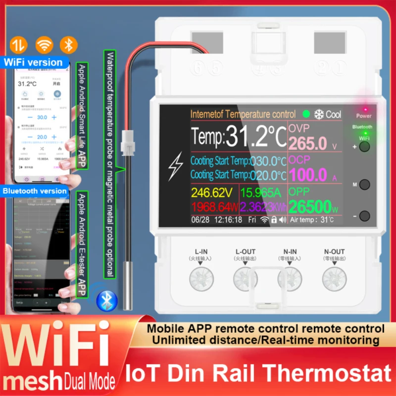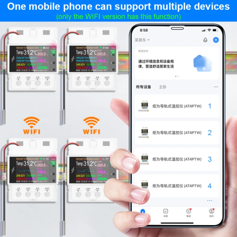 고정밀 WiFi IoT 스마트 온도 컨트롤러 과전압, 과전류 및 과전력 디스플레이, 알람 및 자동 전원 끄기, 휴대폰 APP 네트워킹, 원격 제어 및 원격 측정, 무제한 거리, 몇 초 만에 가전 제품 변경, 지능적이고 안전한 전기 소비 및 지능형