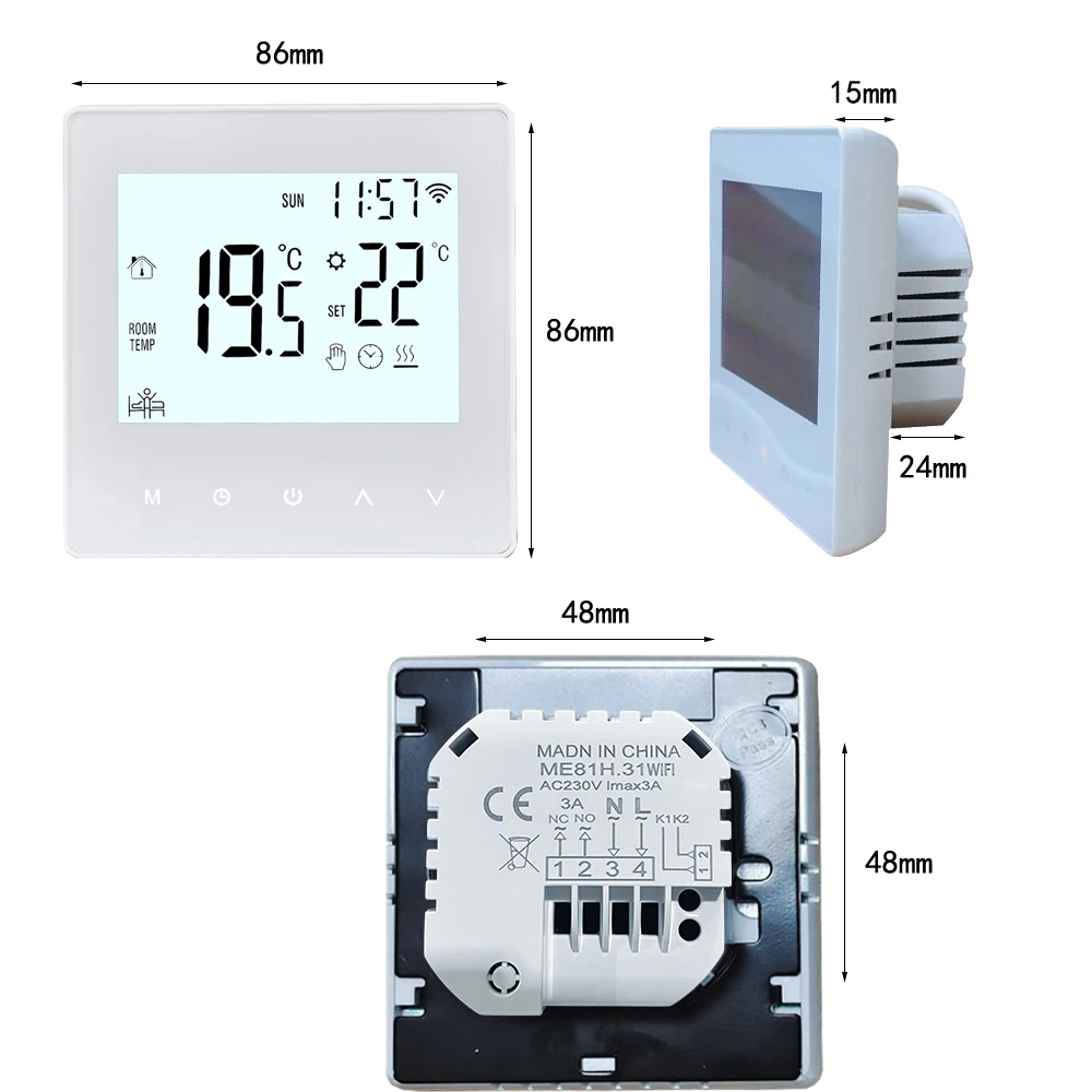 NTC 온도 센서: AC 230V 및 5-90 °C 설정 범위는 지능형 온도 조절기를 다양한 가정에 적합하며 NTC 온도 센서가 장착되어 있습니다. 정확한 온도 판독 값을 제공하고 정확한 온도 제어를 보장합니다.