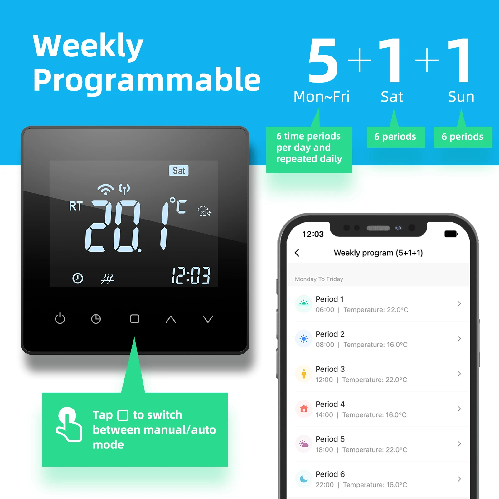 【주간 프로그램】 5 + 1 + 1, 온도는 근무 일과 휴식 일 모두 6 시간 동안 설정할 수 있습니다.