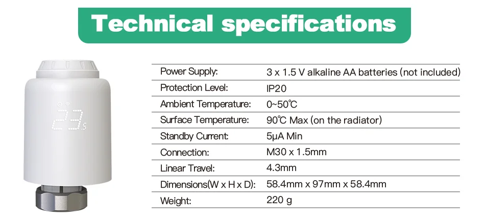 ? 알렉사 및 구글 홈과 호환:이 스마트 자동 온도 조절 라디에이터 액추에이터 밸브 헤드는 Alexa 및 Google Home과 완벽하게 통합되어 음성 명령을 통해 온도 설정을 제어 할 수 있습니다.