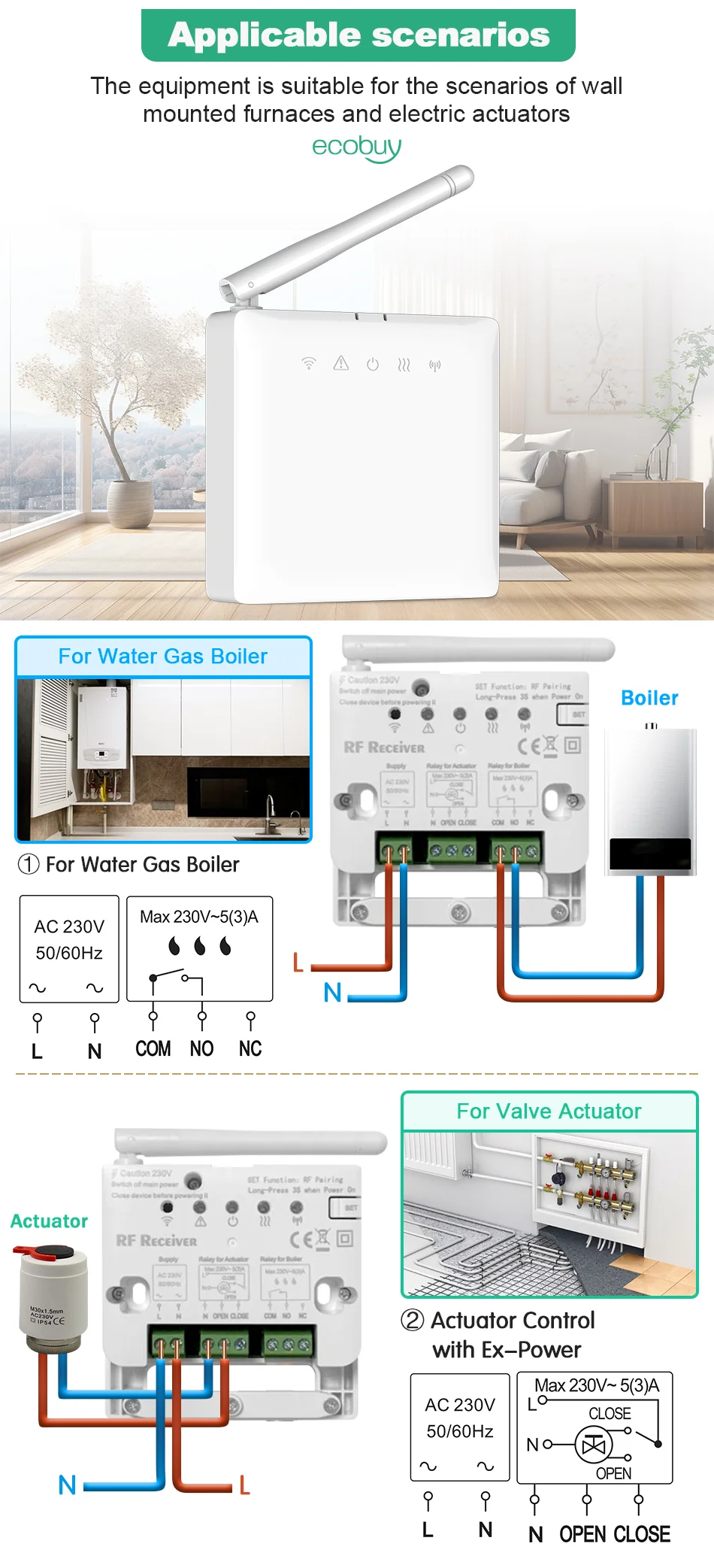 Tuya 스마트 와이파이 보일러 온도 조절기 무선 콤비 전원 공급 장치: