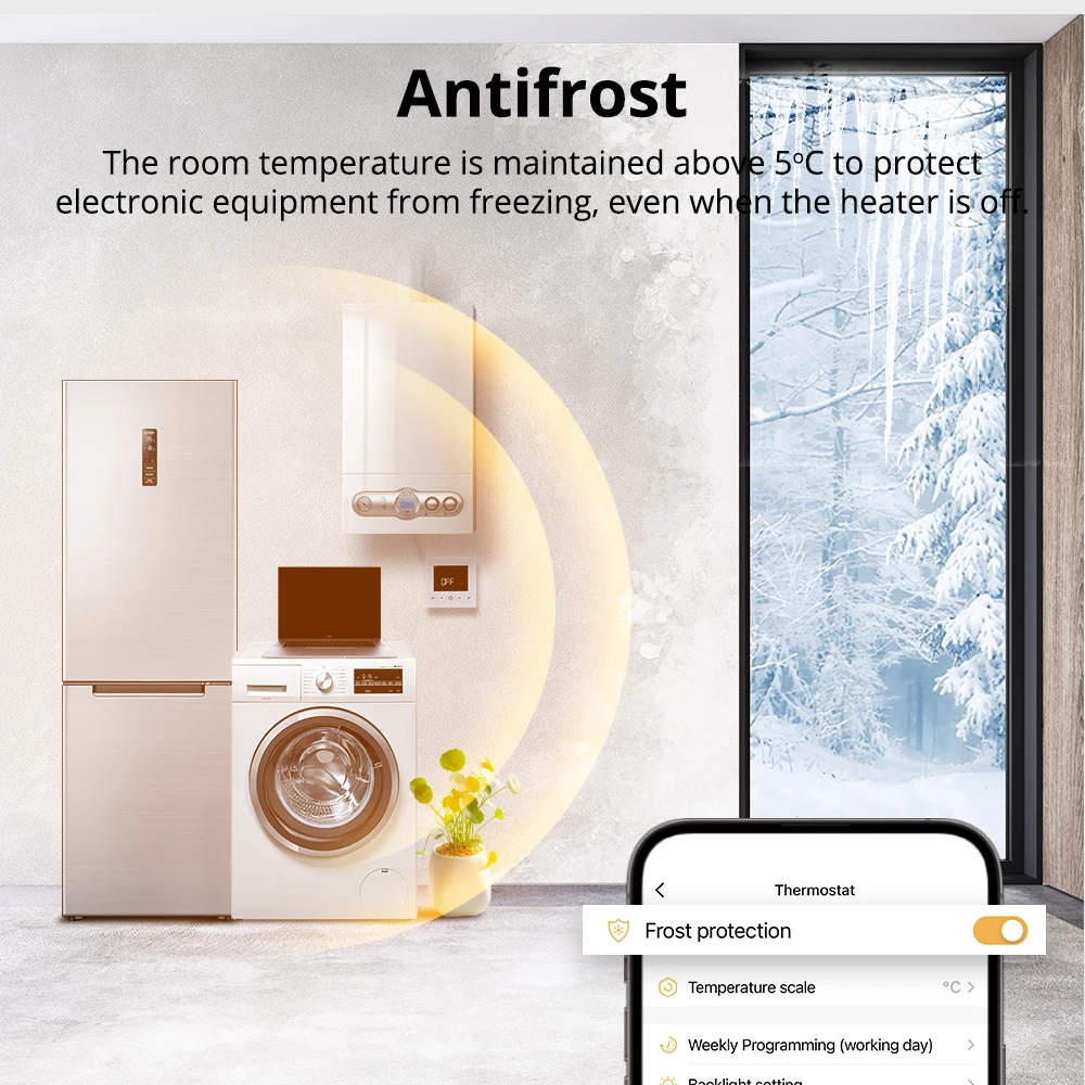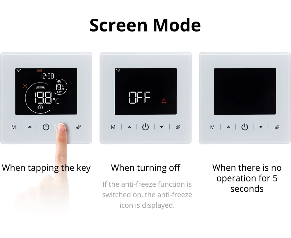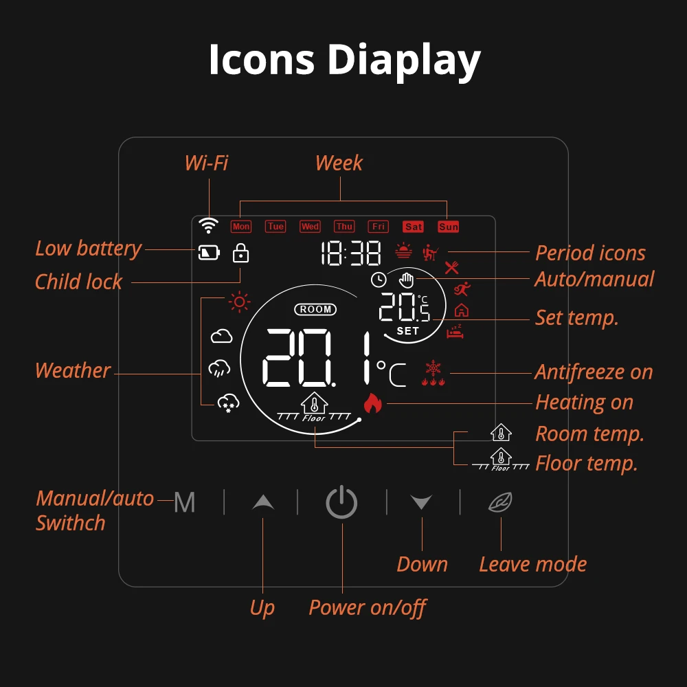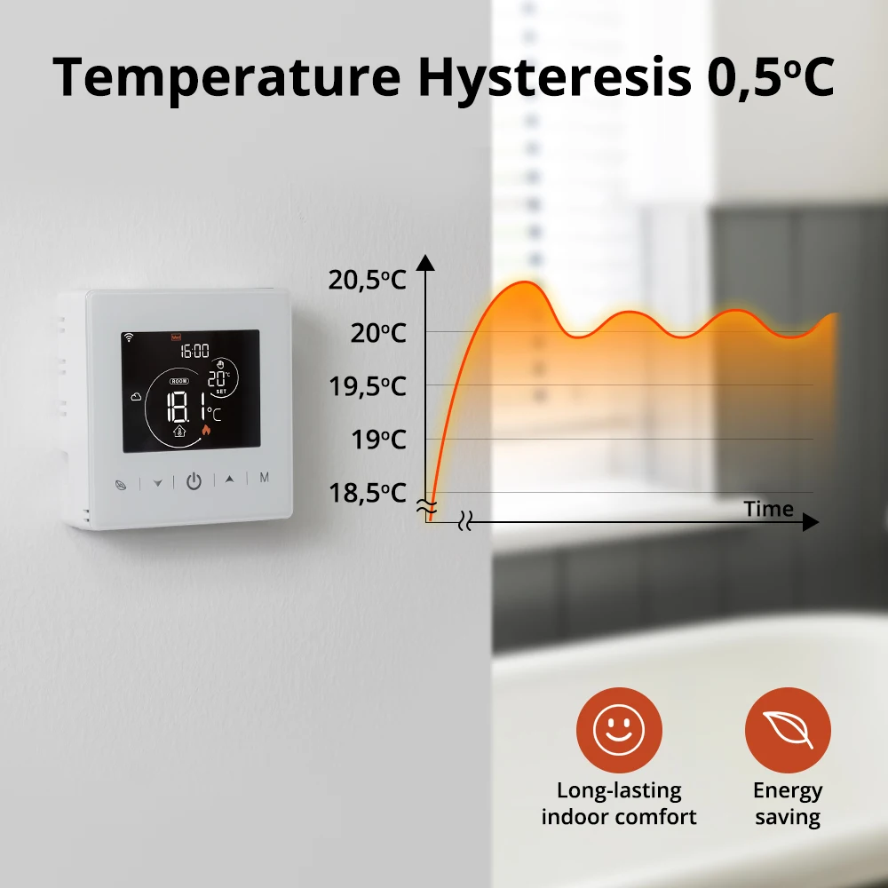 【정확한 온도 조절, 더 편안함】 온도 히스테리시스: 0.5 ~ 10 ℃/최소 온도 설정: 0.5 ℃/온도의 상한 및 하한: 5 ~ 95 ℃