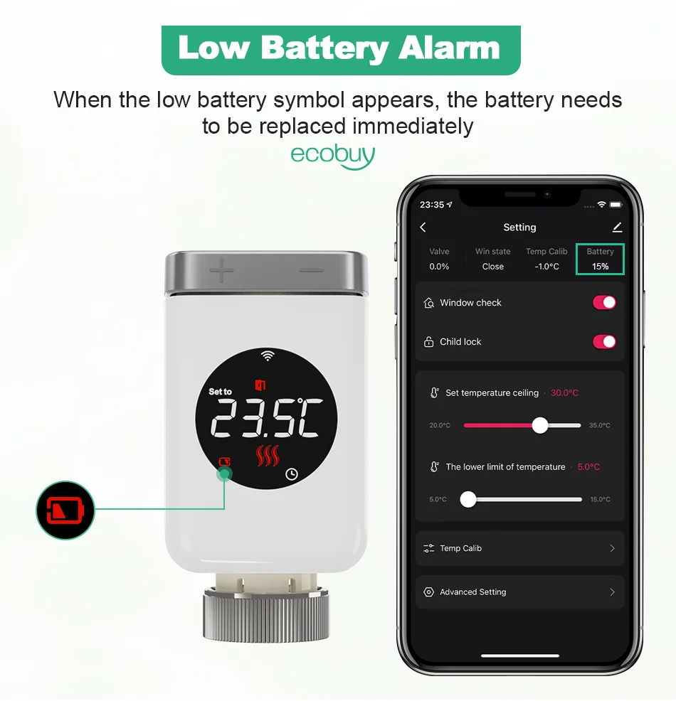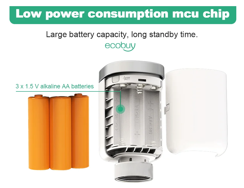 This Tuya Smart Home TRV is powered by batteries, and it can be connected to mobile phone directly through wifi.