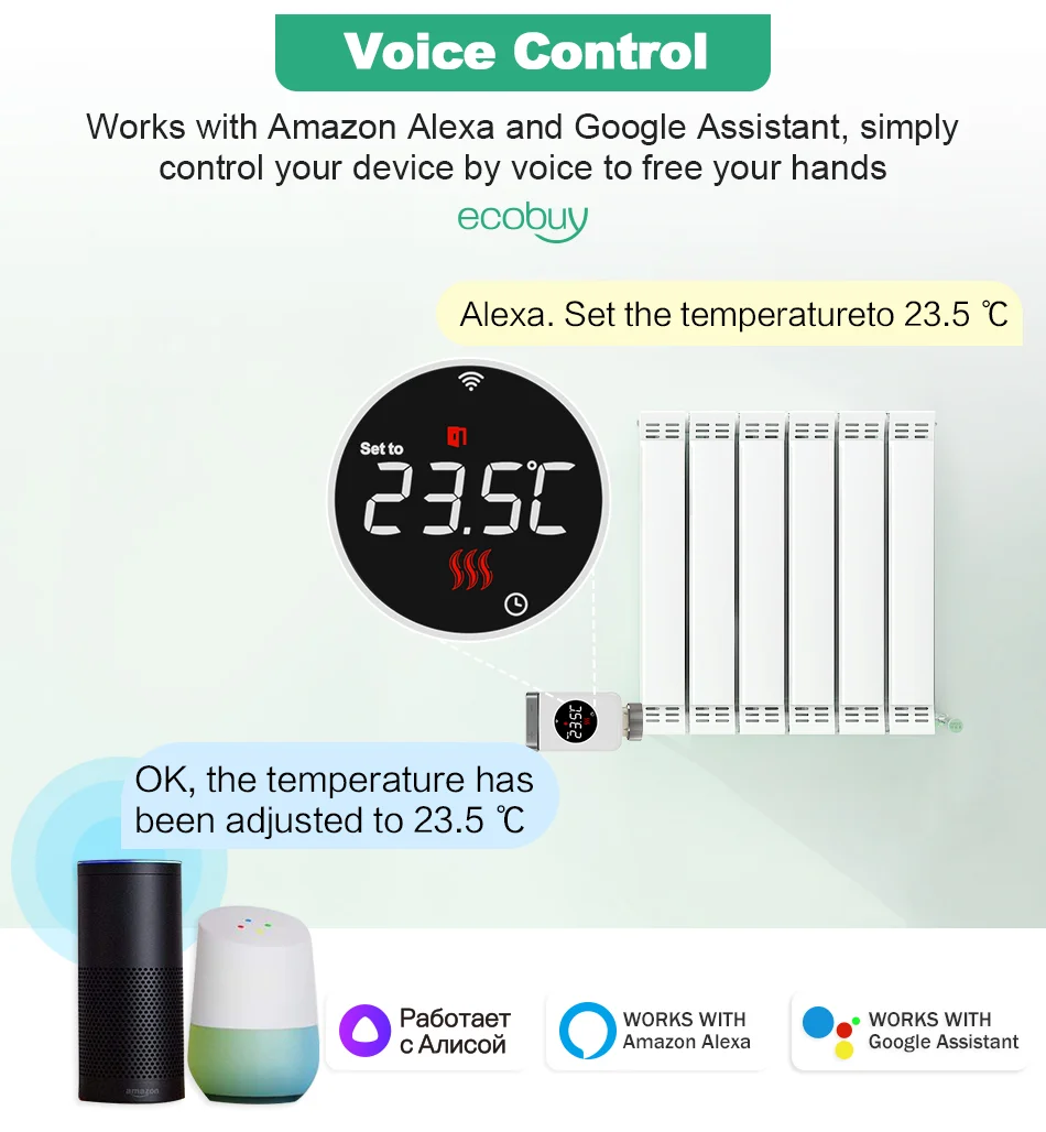 Tuya 스마트 홈 온도 조절 라디에이터 밸브 음성 제어