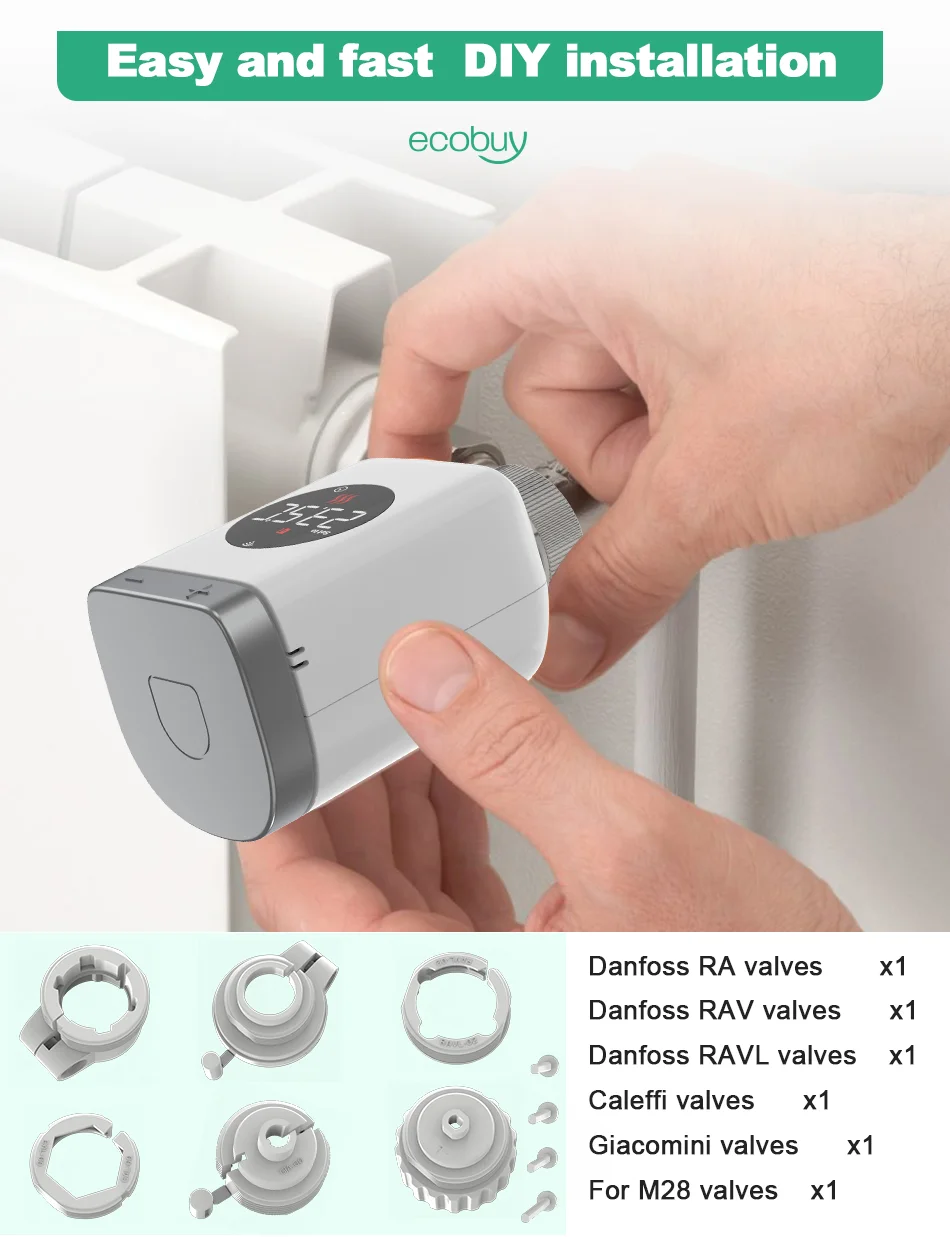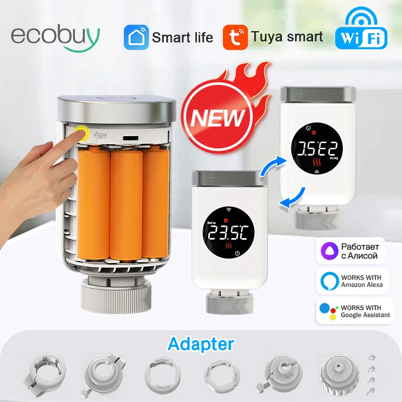 TRV801W Tuya 스마트 WiFi 온도 조절 라디에이터 밸브 액추에이터 스마트 라이프 무선 원격 제어 홈 난방 온도 조절기 온도 컨트롤러 Alexa Google 홈 음성 제어