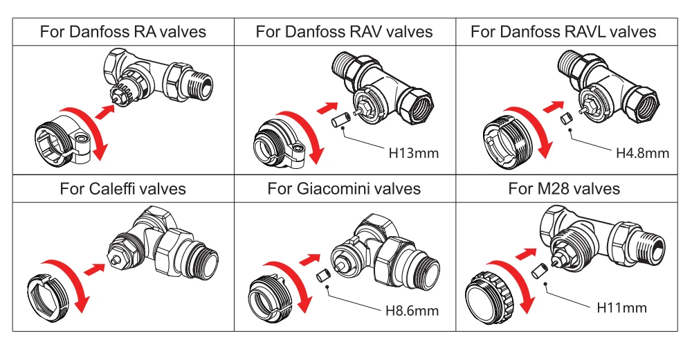 Great value for money, comes with 6 valve adapters Comes with 6 different types of valve adapters, suitable for 97% of the radiator valve interfaces on the market.