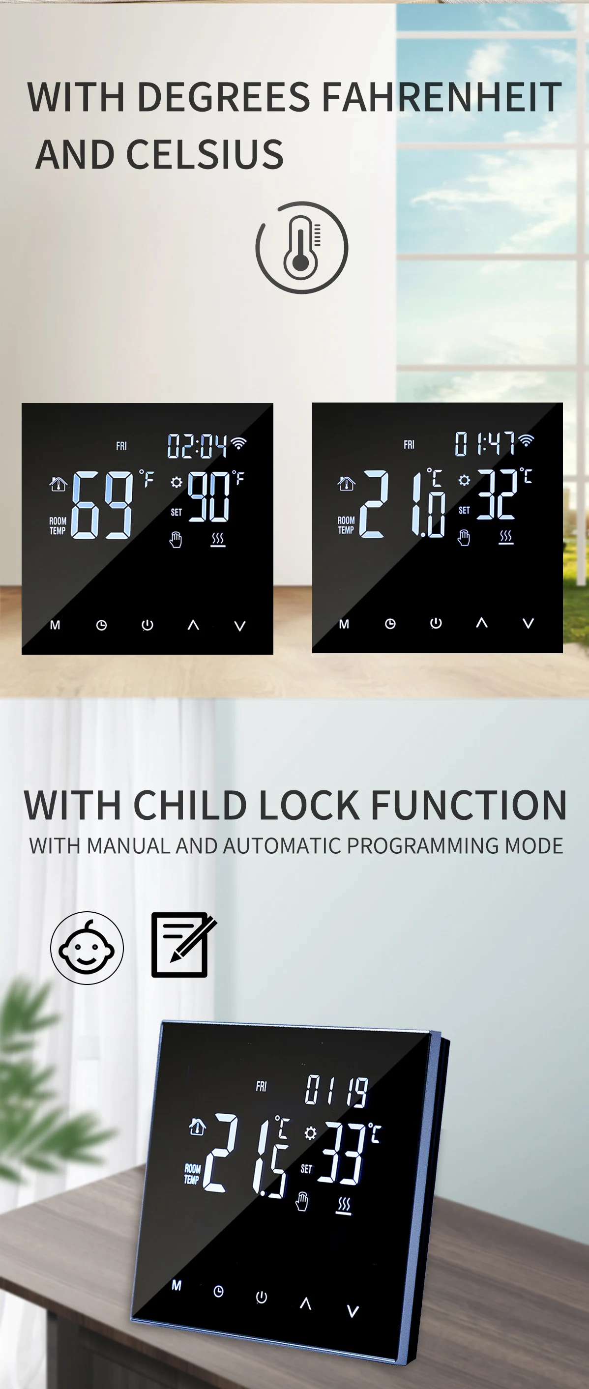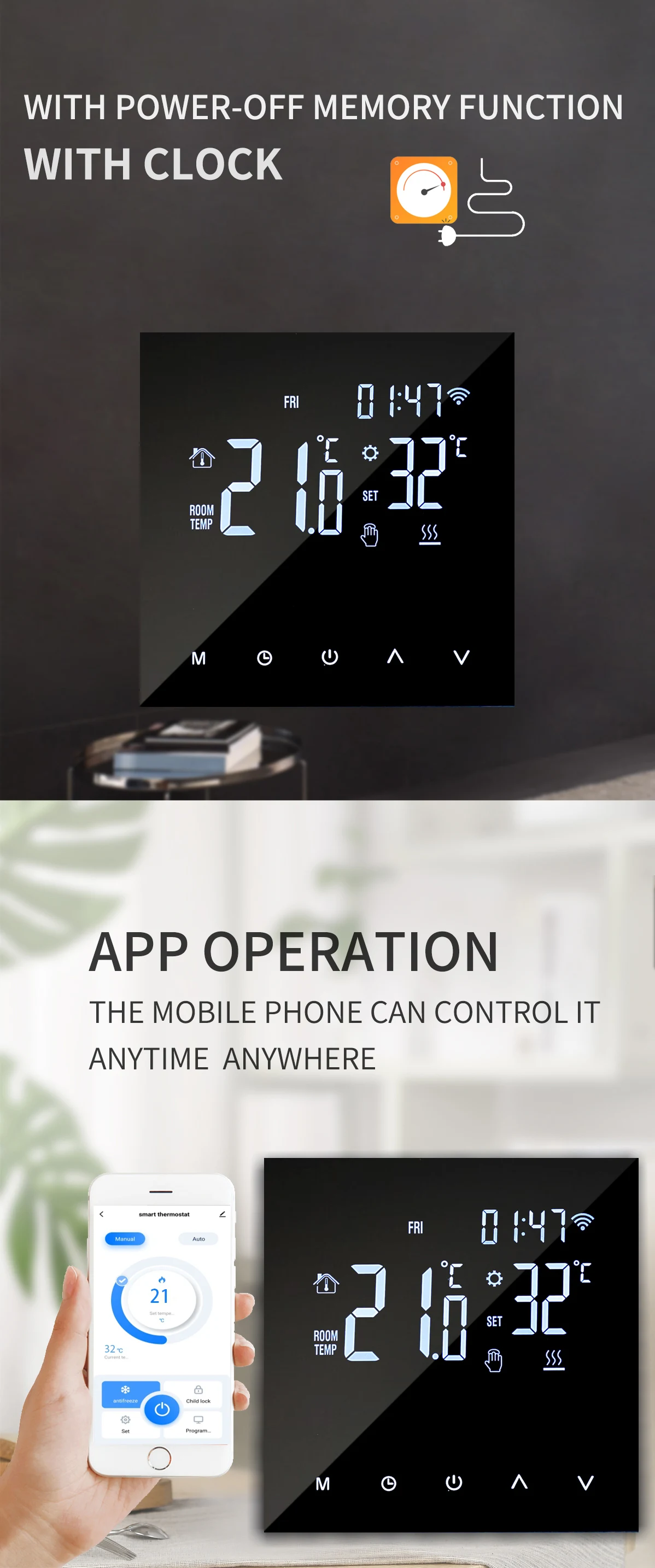 Tuya 스마트/스마트 라이프 앱 작업. 빠른 연결을 위해 블루투스를 켜십시오. 어디에 있든 언제든지 온도를 제어 할 수 있습니다.