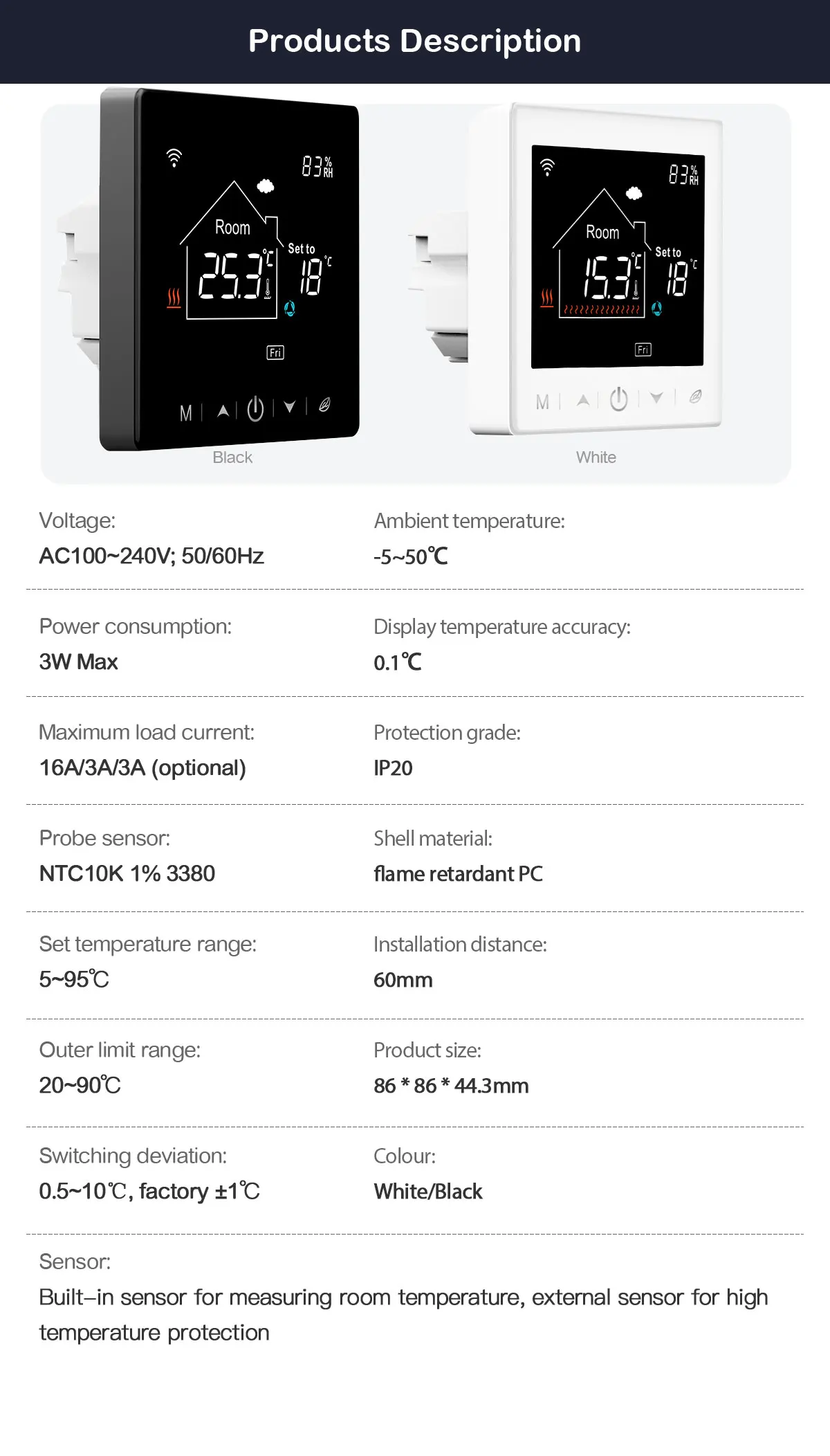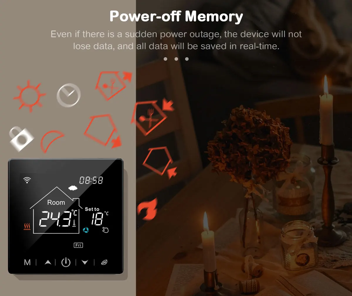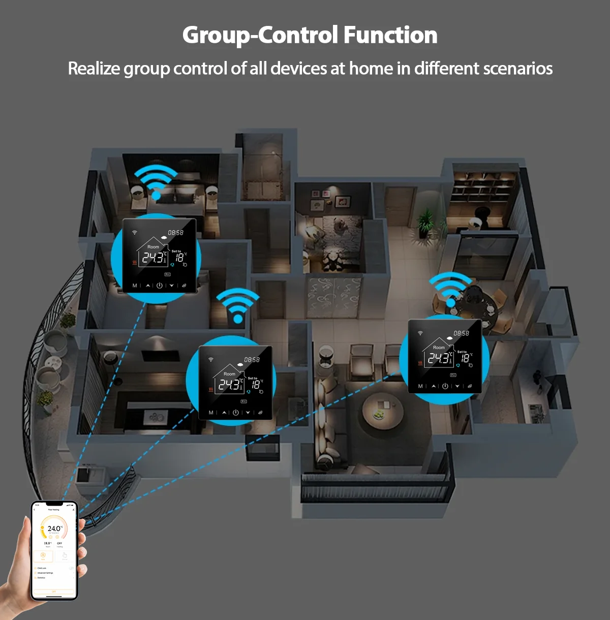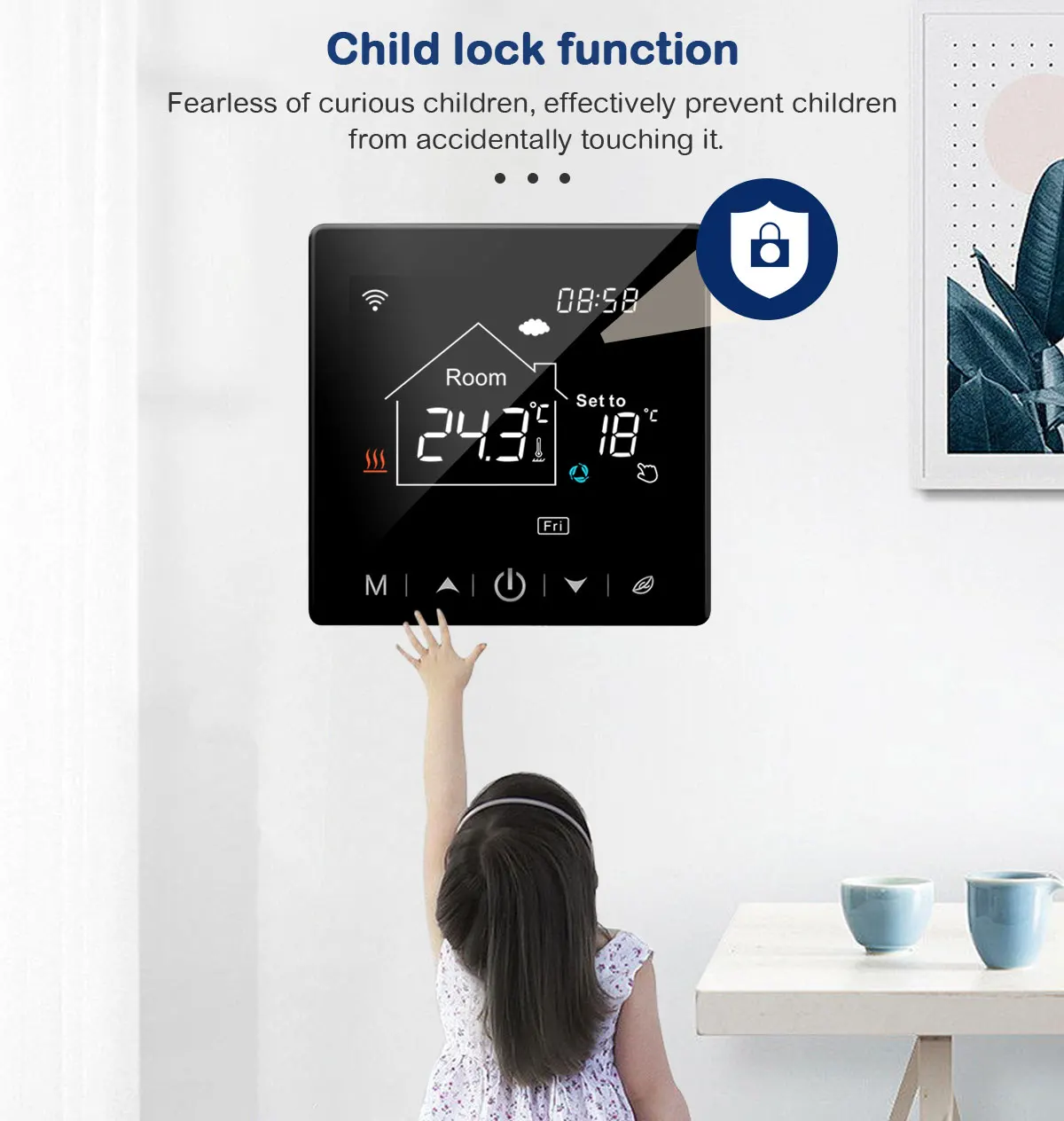 【APP 원격 제어】: Smart Life APP를 통해 언제 어디서나 집 온도를 원격 제어하고 가족에게 공유 장치를 지원합니다.