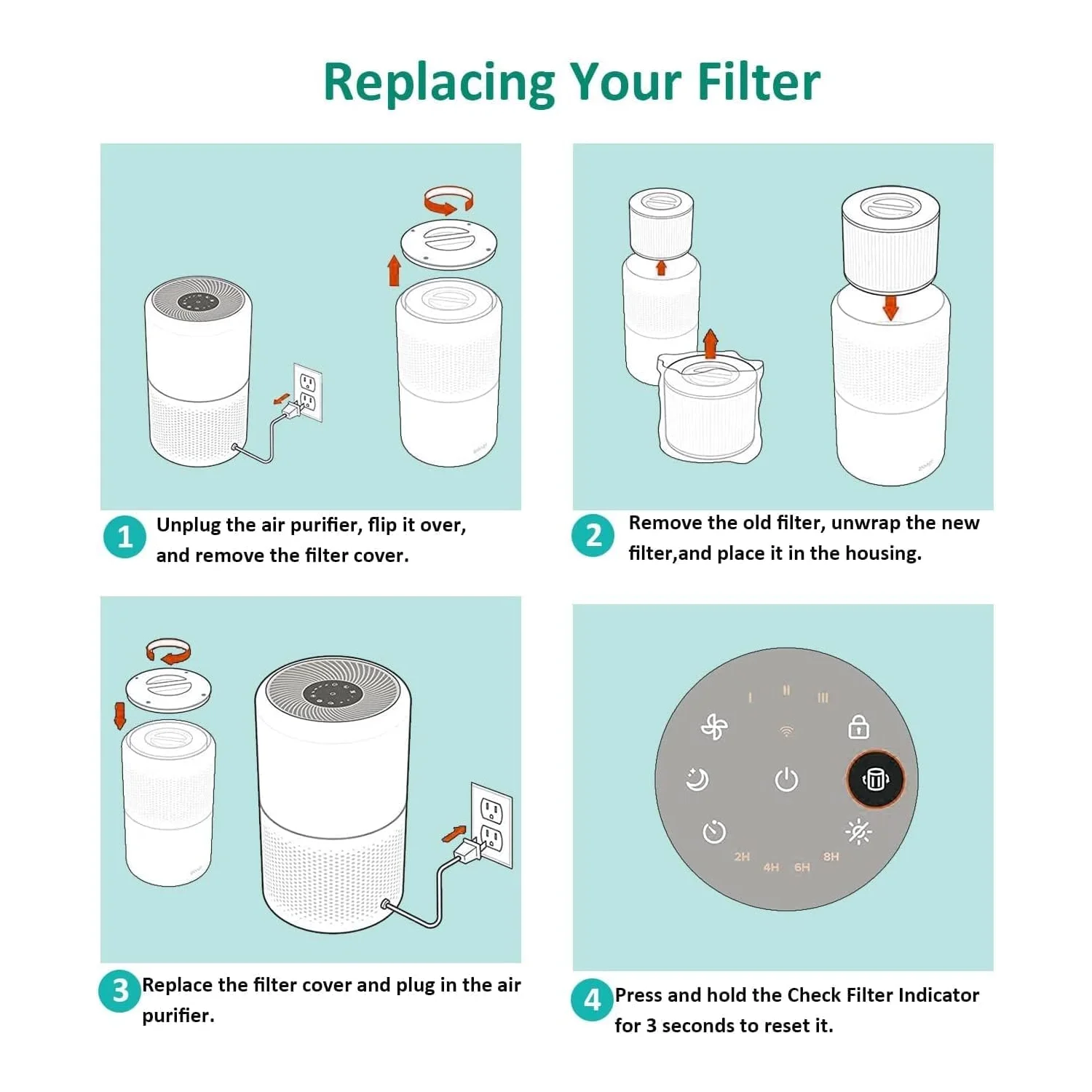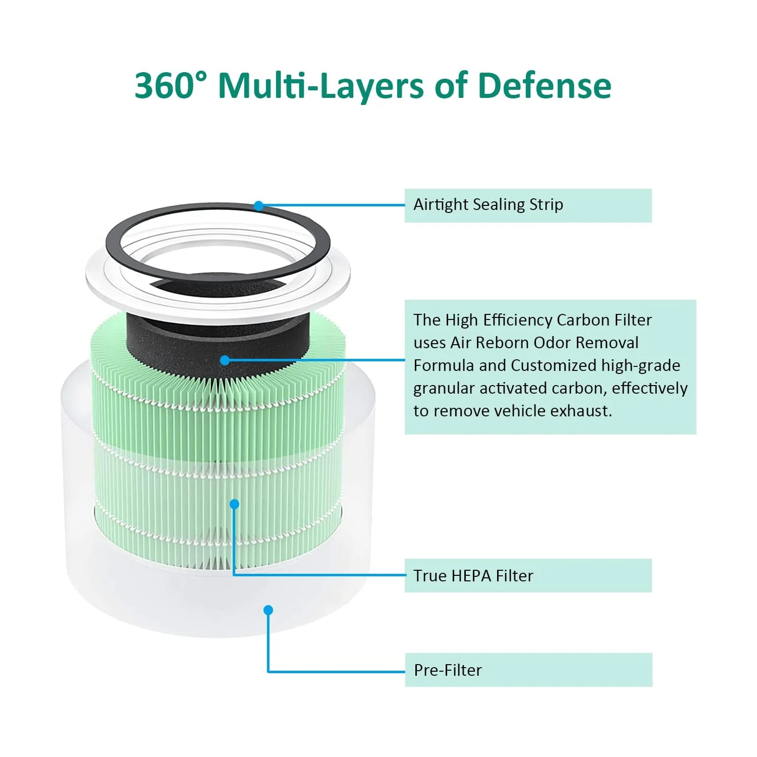 LEVOIT Core 300 및 Core 300S Filte 교체용 고효율 활성탄 공기 청정기 H13 등급 True HEPA 필터 3-