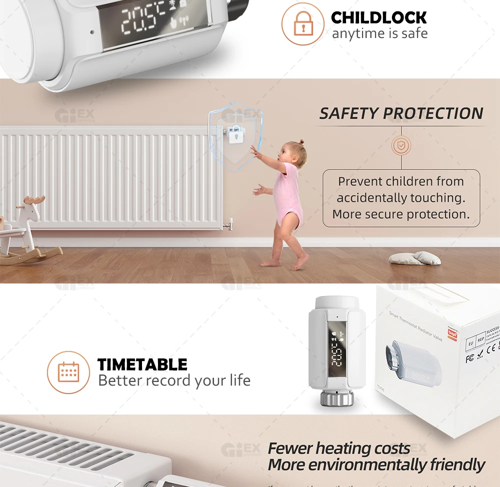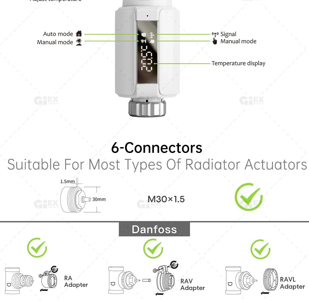 5. 열린 창 감지: 실내 온도가 갑자기 온도로 떨어지면. 임계 값, 밸브는 15 분 동안 닫힙니다. 그 후, 실내 온도. 여전히 온도보다 낮습니다. 임계 값은이 모드를 유지합니다. 게다가, 그것은 e섭씨 온도의 디지털 디스플레이를 읽기 쉽습니다.전체 2 년 보증, 모든 GIEX 스마트 온도 조절기, 60 일 환불 보증, 모든 고객에게 완전한 만족은 GIEXgo골입니다.