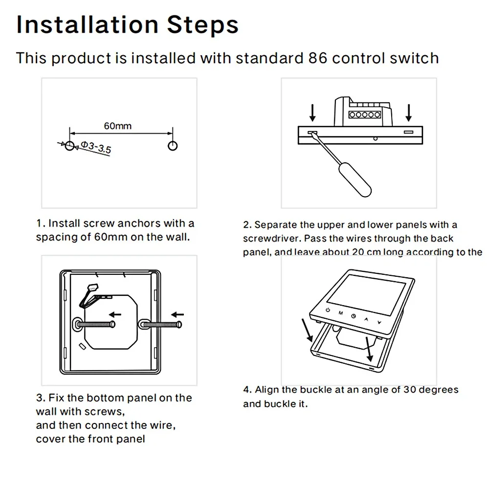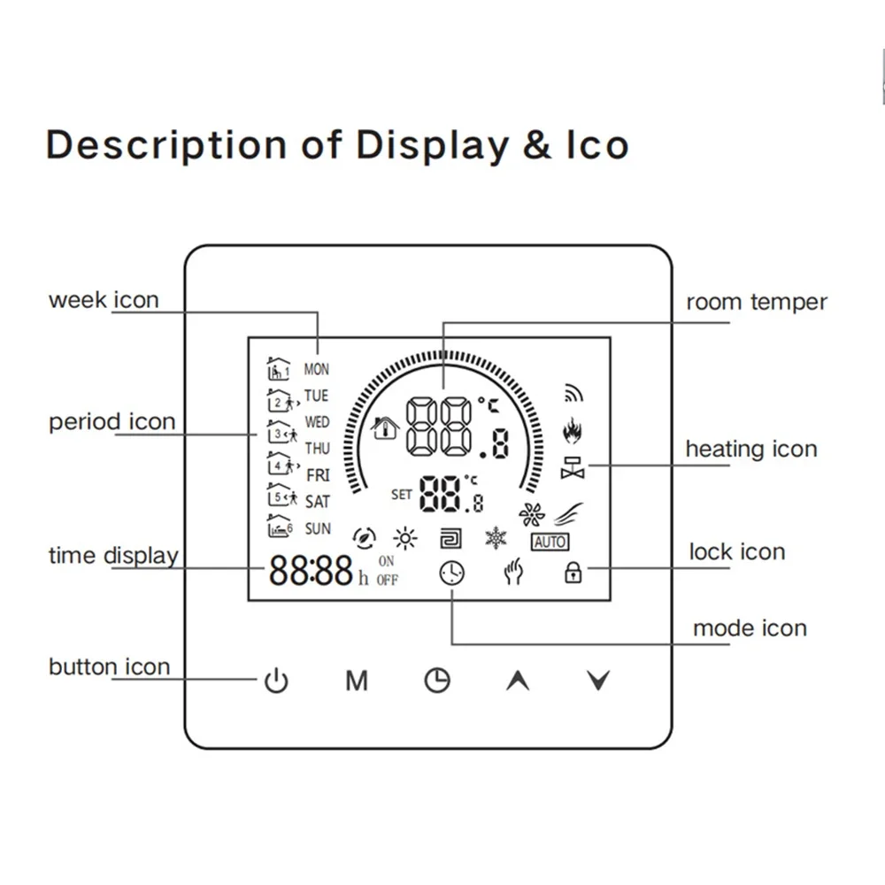 제품 사용: 16A 는 전기 난방 필름/난방 바닥/전기 난방 그림/난방 케이블/난방 타일에 적합합니다. 3A 는 수도 시스템/가스 보일러/벽걸이 보일러/수도 펌프에 적합합니다. 가정, 사무실, 쇼핑몰, 상점, 번식 농장 및 기타 장소에 완벽하게 적합합니다.