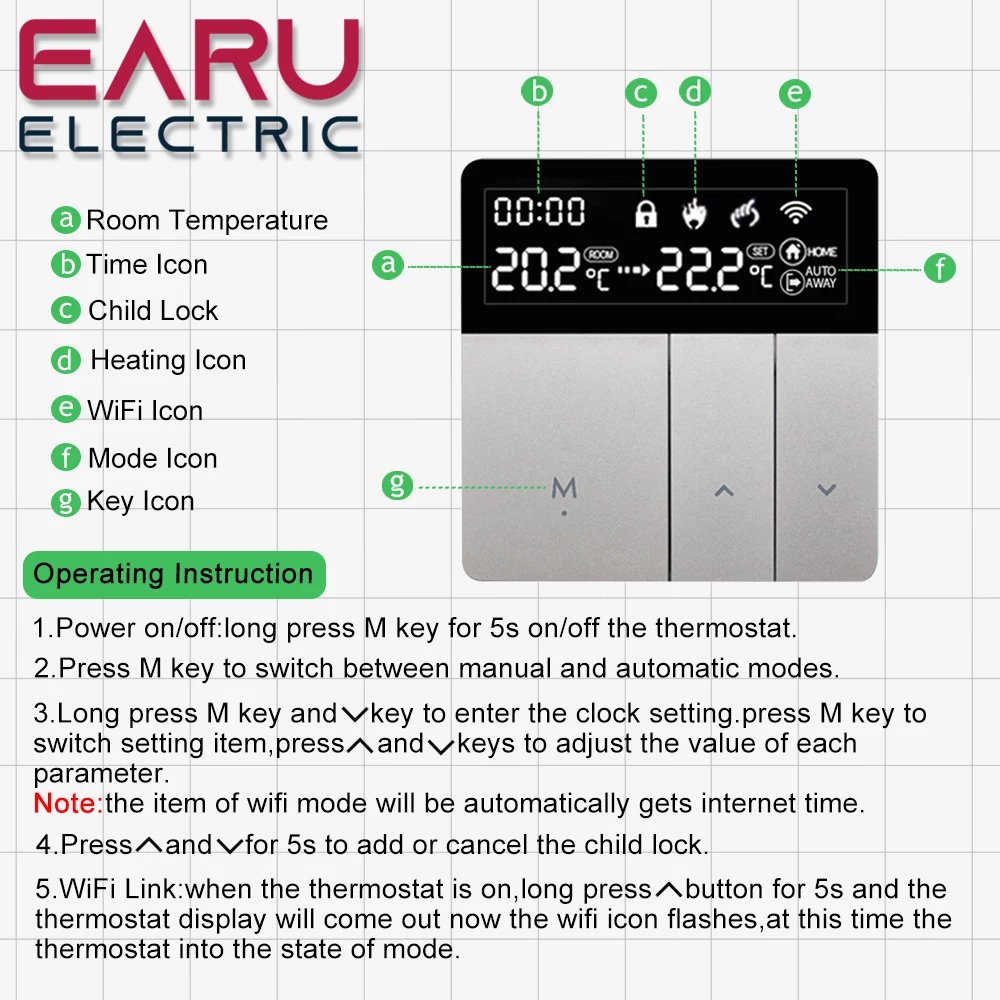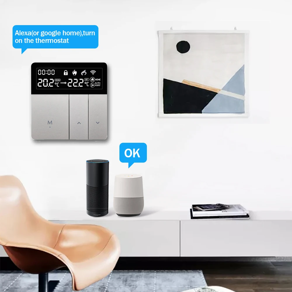 스마트 물 가열 온도 조절기는 가정용 바닥 난방 시스템 또는 보일러와 같은 난방 시스템의 실내 온도 제어에 적합합니다. 아시아, 유럽 및 미국에서 널리 사용할 수 있습니다. 장식 스타일을 완벽하게 혼합하고 커스터마이징을 지원합니다.