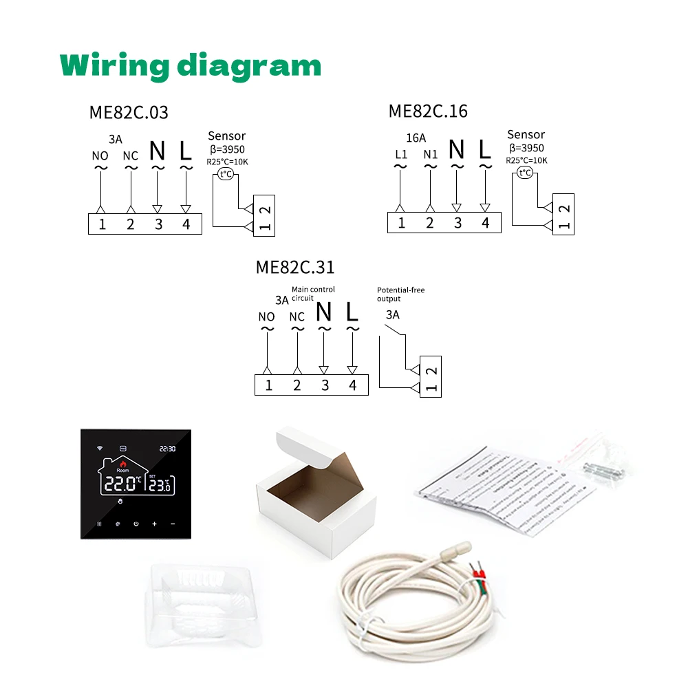 1.ME82C.16(16A) 사용 제어 난방 케이블/난방 매트/난방 필름 등 전기 바닥/바닥 난방 시스템.