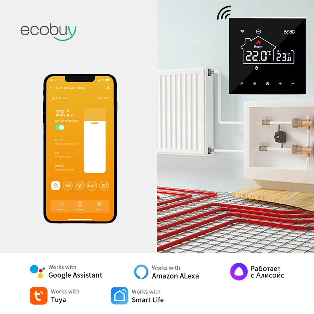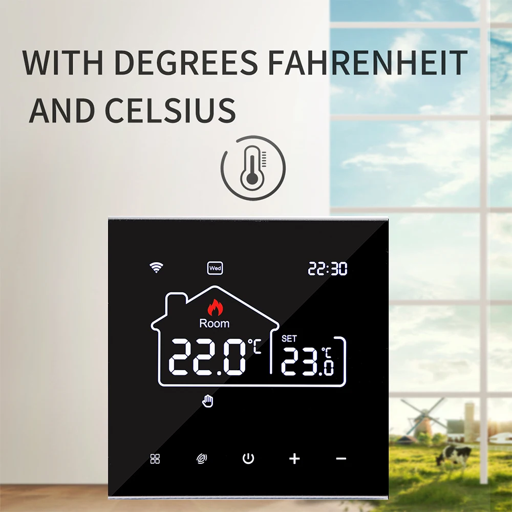 바닥 난방용 Tuya WiFi 스마트 난방 온도 조절기 따뜻한 바닥 물/가스 보일러 온도 컨트롤러 220V 조절기 난방 케이블 Alexa Google 홈 음성 제어를위한 스마트 서모 스탯
