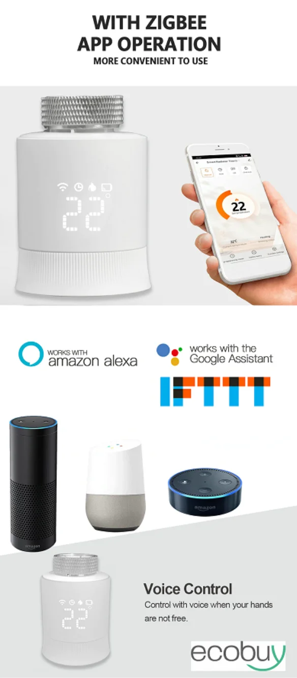 스마트 투야 지그비 온도 조절 라디에이터 밸브 음성 제어
