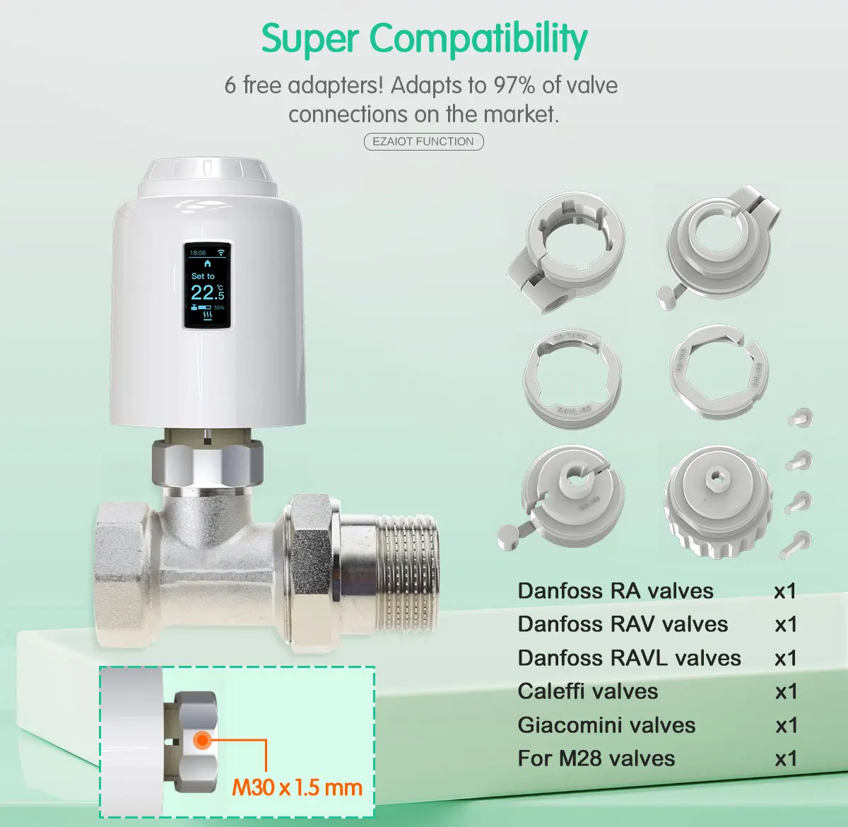 [슈퍼 호환성]-일반 TRV와 비교하여 6 가지 모델의 어댑터가 제공되며 시장 히터 밸브 인터페이스의 97% 맞게 조정됩니다.