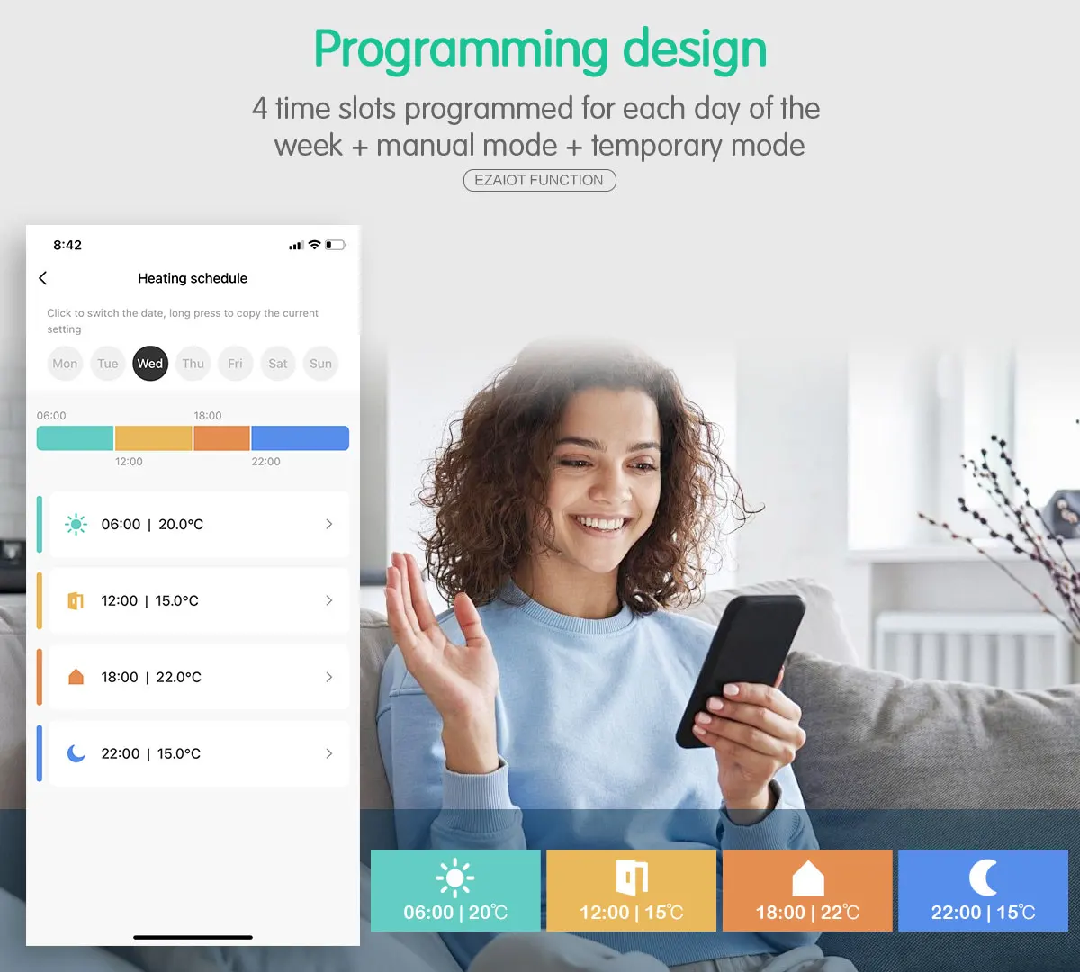 [프로그램 가능한 주간 일정]-7 일 프로그래밍 가능한 주간 일정, APP에서 4 시간/일을 설정할 수 있습니다.