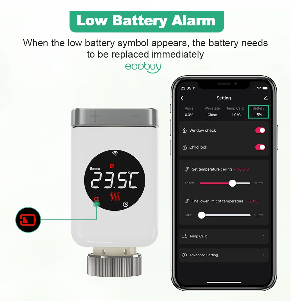 4. 【데이터 로깅 기능】: Tuya Smart APP는 밸브 개방 정도와 실내 온도를 기록하여 제품의 작동 상태를보다 직관적으로 이해할 수 있도록합니다.