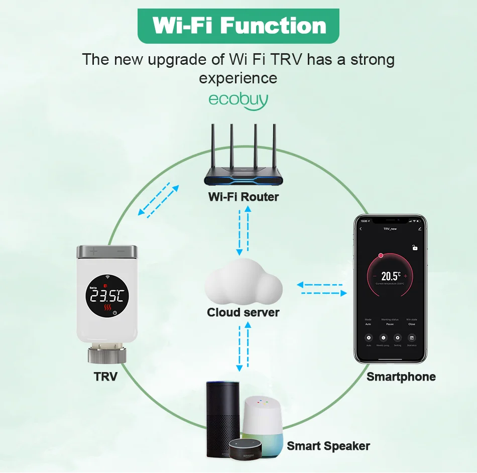 지그비 게이트웨이는 더 이상 필요하지 않습니다!! 이 WIFI TRV를 스마트 폰에 직접 연결할 수 있습니다. One APP는 20 개 이상의 제품 컷을 제어하고 스마트 홈 장치의 전체 연결을 실현할 수 있습니다. 이 제품을 앱에 추가하면 삶이 편해집니다.