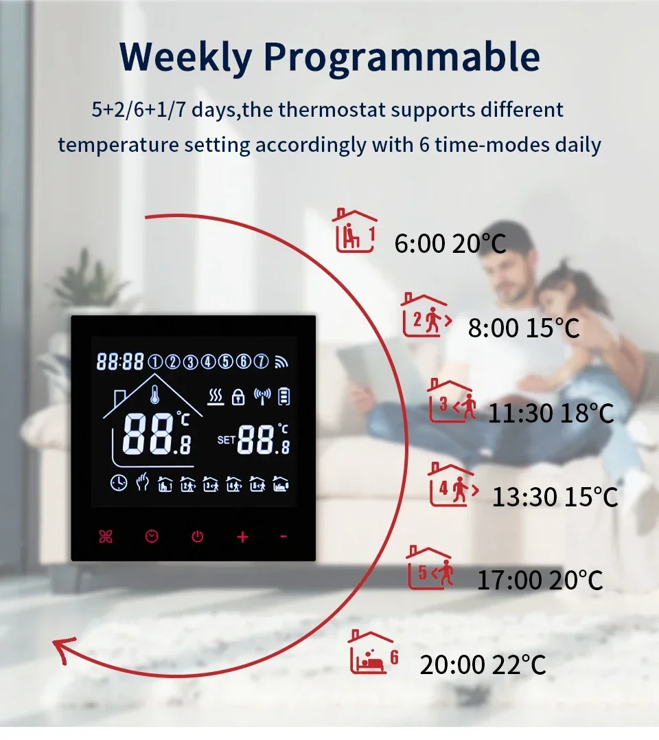 투야 스마트 홈 온도조절기 물 바닥 난방 전기물 가스 보일러 와이파이 온도 리모컨 구글 알렉사 포함