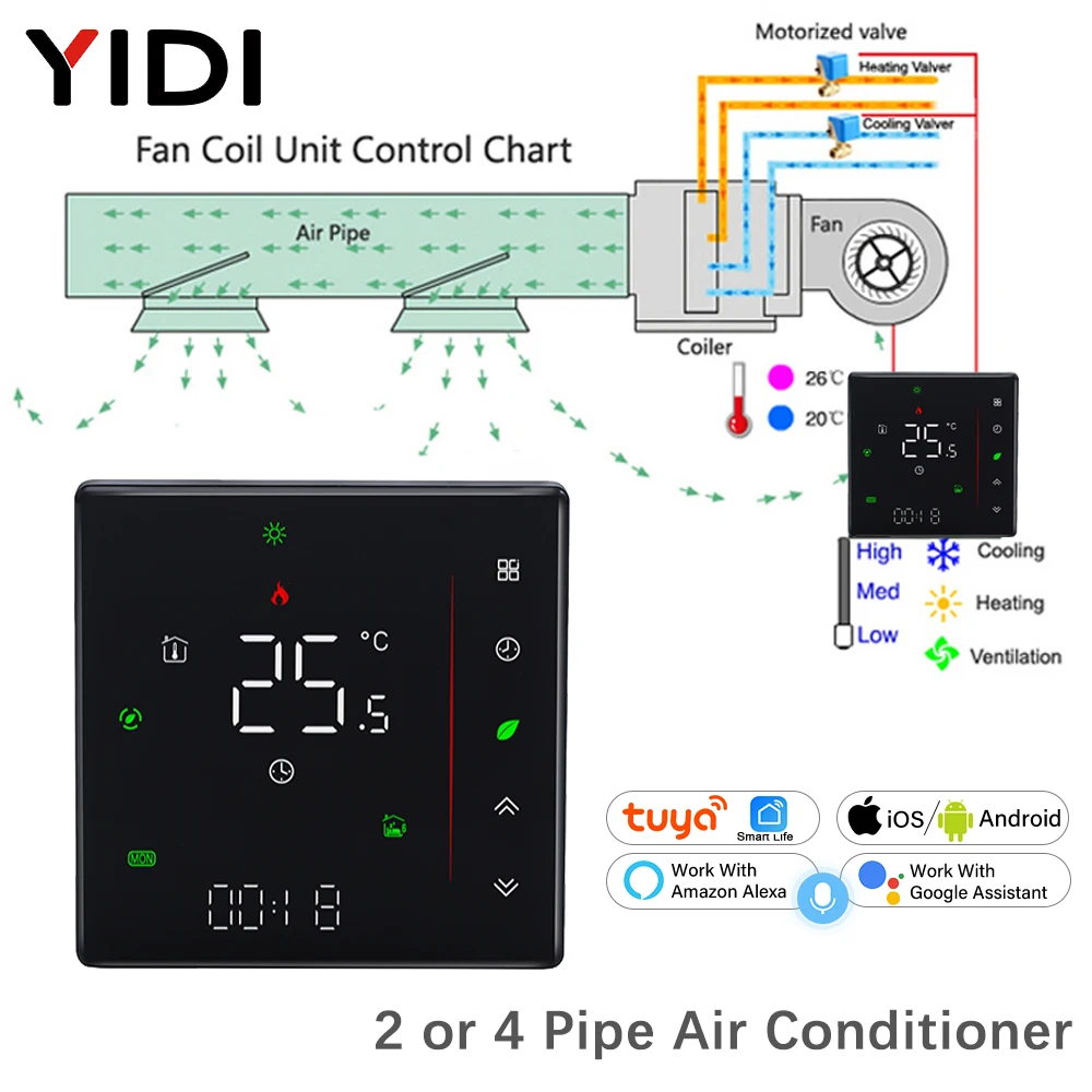 YIDI 2 Pipe 4 Pipe Tuya WiFi Smart Life Central Air Conditioner Thermostat 3 Speed Fan Coil Unit Wireless Remote Temperature Controller Voice Control Work with Alexa Google Assistant