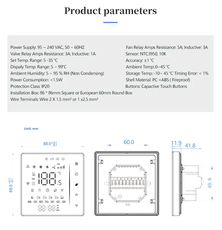 YIDI WIFI Smart Room Thermostat is designed to control the fans and valves in air conditioner applications by comparing