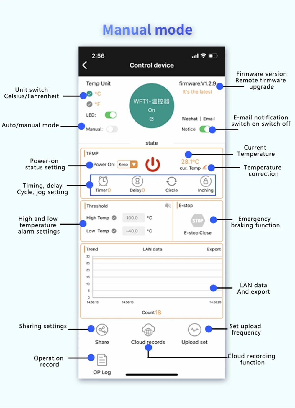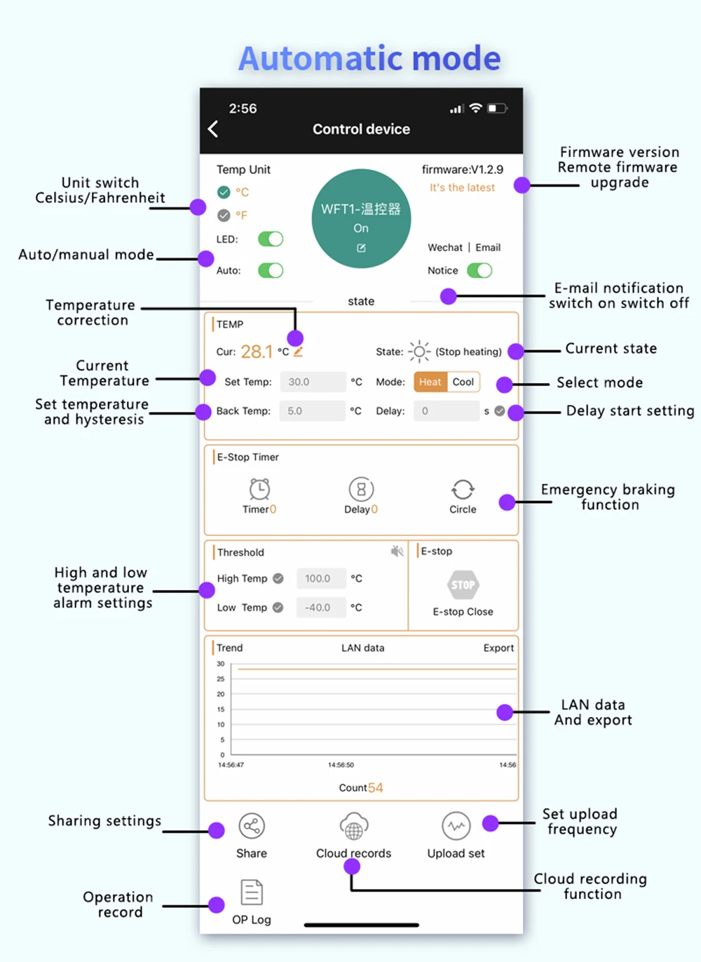 저온 경보: 저온 경보가 켜지면 전류 온도가 저온 경보 온도보다 낮을 때 릴레이가 분리됩니다.