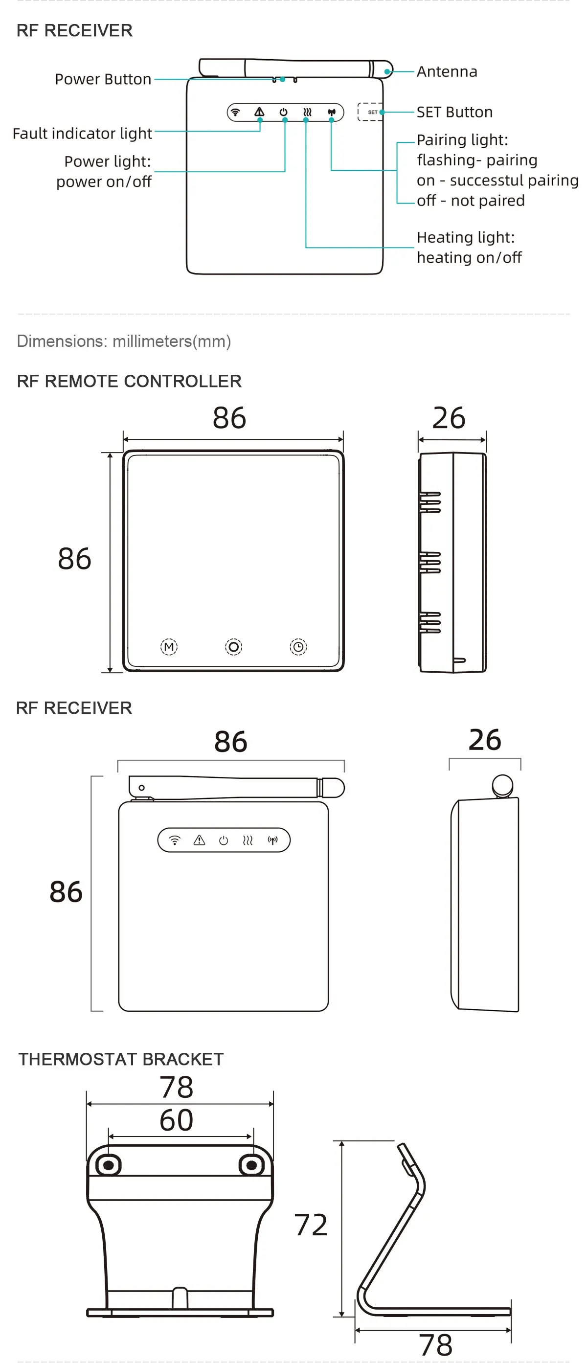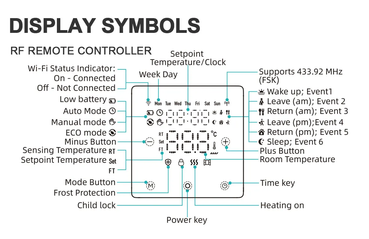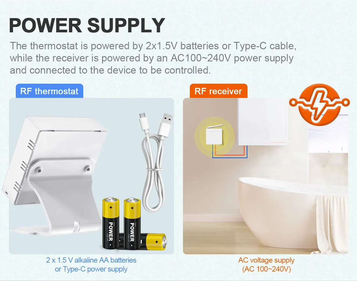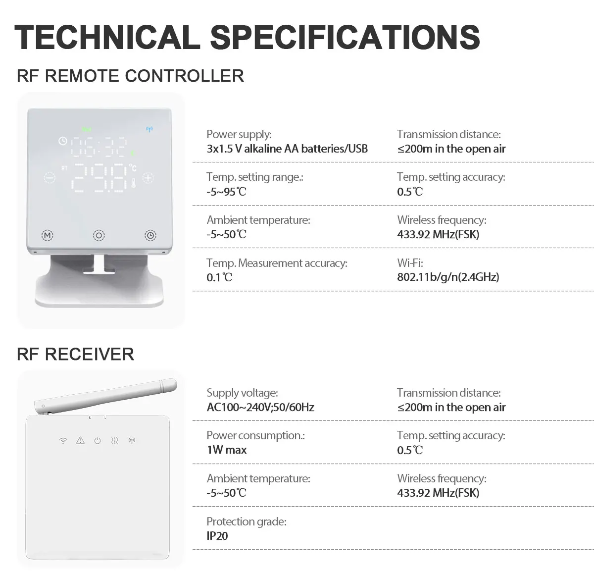 RF433 무선 디지털 물 가열 온도 조절기 (수신기 포함)