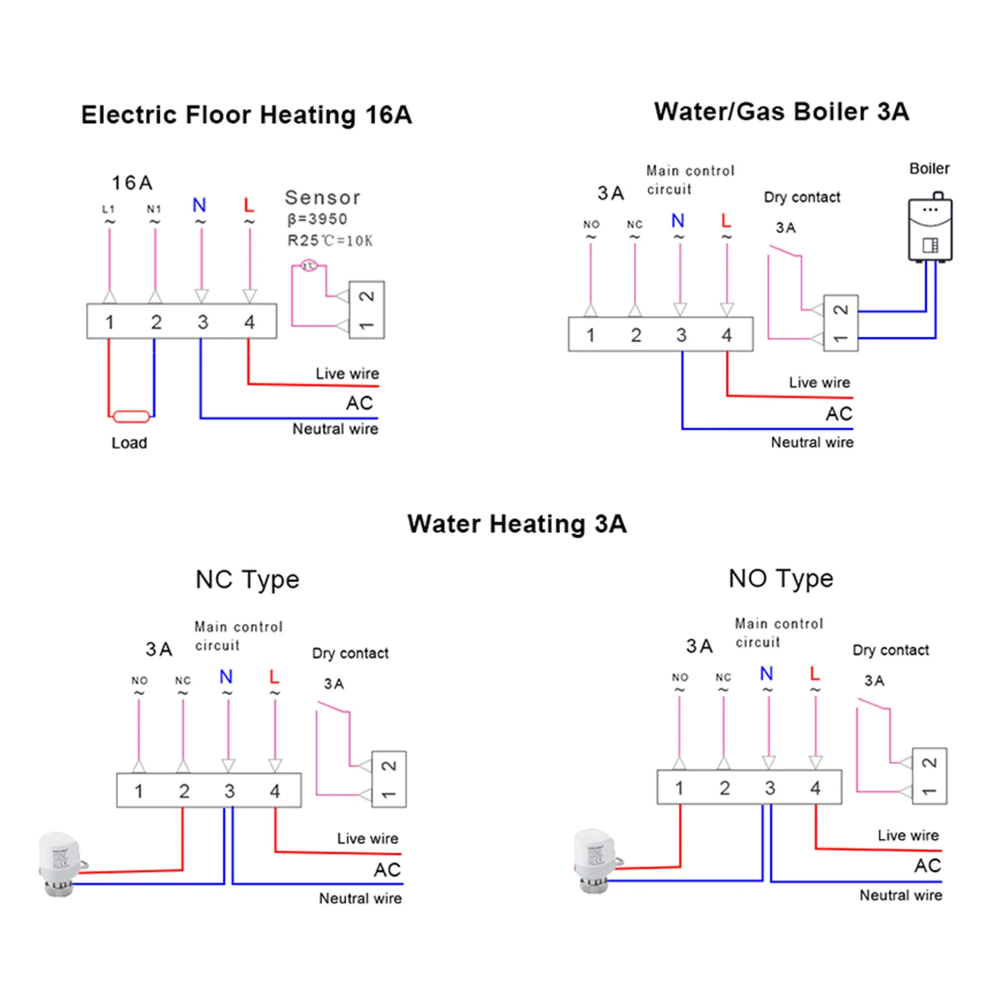 2. 16A 온도 조절기 (WIFI 및 WIFI 버전 없음) 에만 외부 온도 감지 케이블이 포함되어 있습니다.