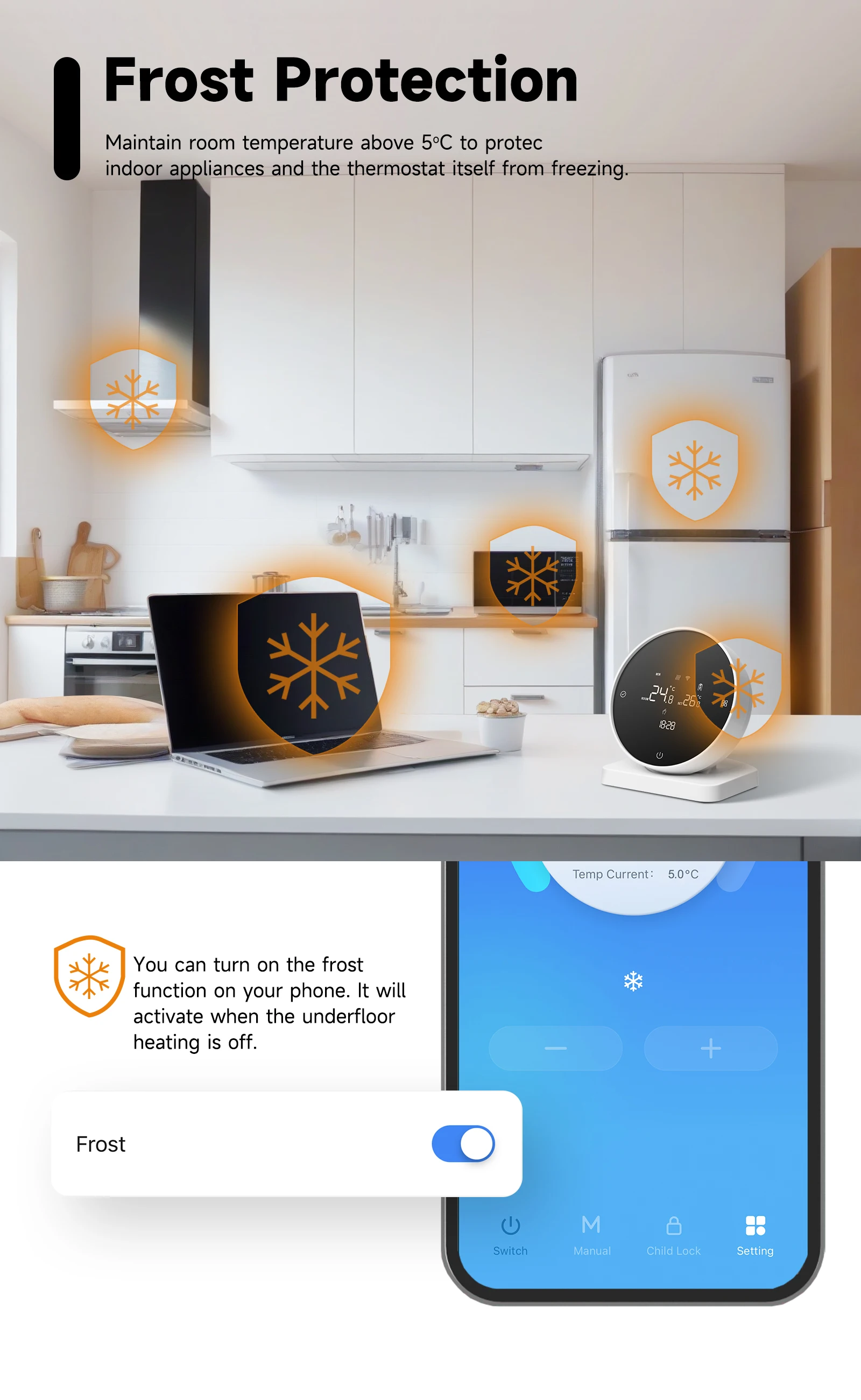 BOT-R7-X-WIFI 건식 접촉 보일러 및 액추에이터를 제어 할 수있는 디지털 지능형 온도 컨트롤러입니다. 그것은 다양한 기능을 가지고 있으며 당신의 삶에 편리합니다!