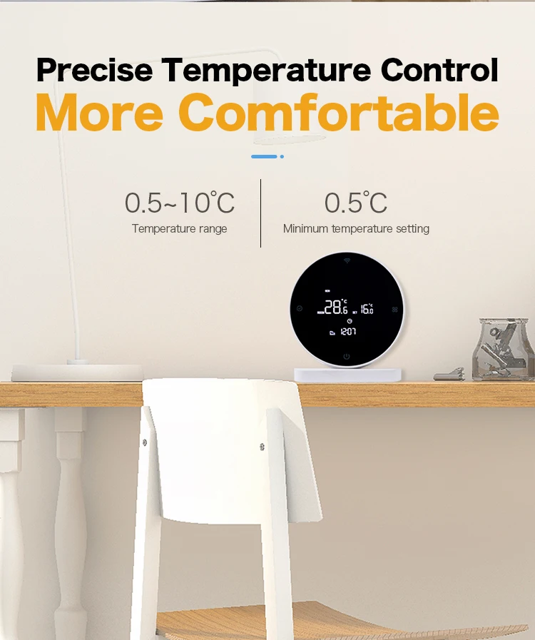 【앱 제어】 스마트 라이프 및 Tuya 애플리케이션에 연결하고 휴대 전화를 통해 언제든지 실내 온도를 원격으로 제어 할 수 있습니다.