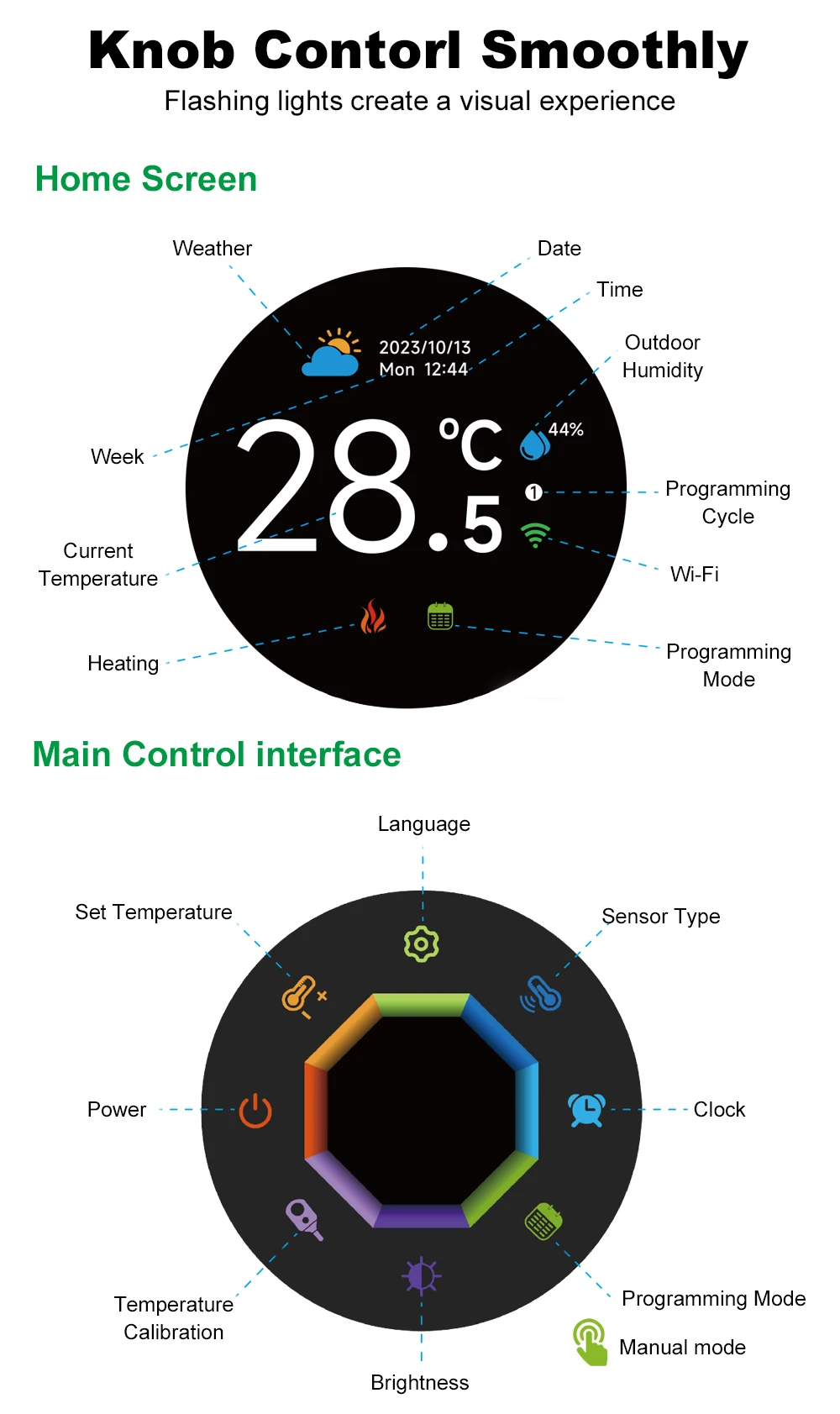 스마트 노브 온도 조절기: 전기 난방/온수/물 가스 보일러
