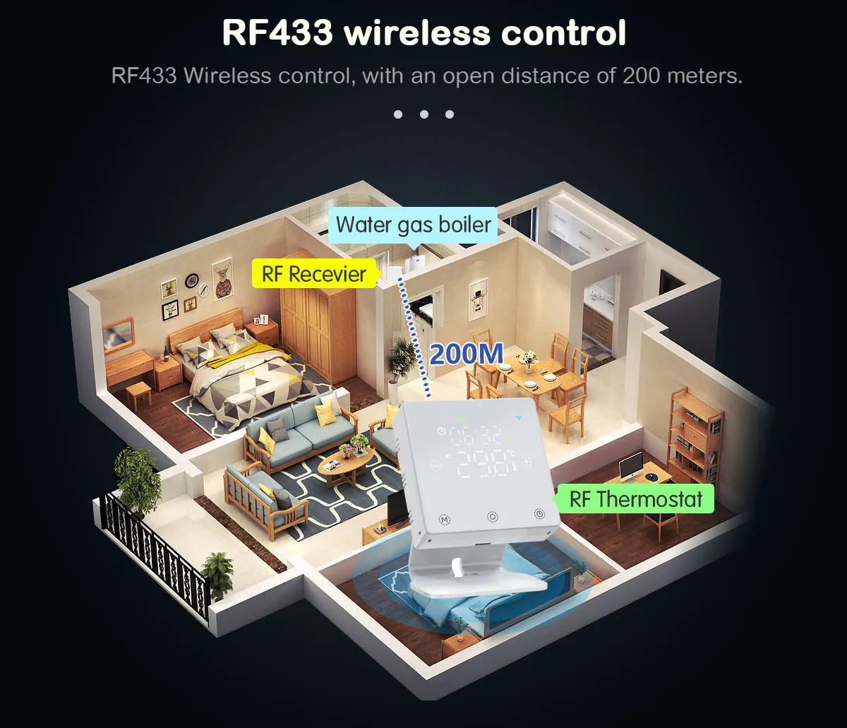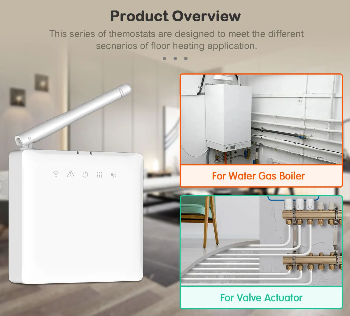 가스 보일러 (3A) 또는 액추에이터 (3A) 에 연결할 수 있습니다. 대부분의 실내 난방 시스템과 호환됩니다.