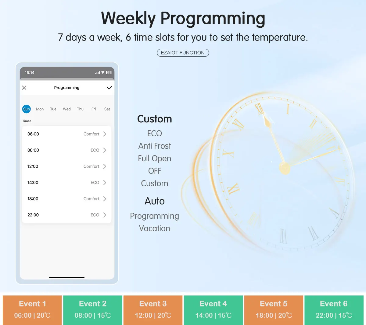 【주간 프로그램】-필요에 따라 일주일에 7 일, 하루에 6 시간 동안 온도를 사용자 정의하십시오