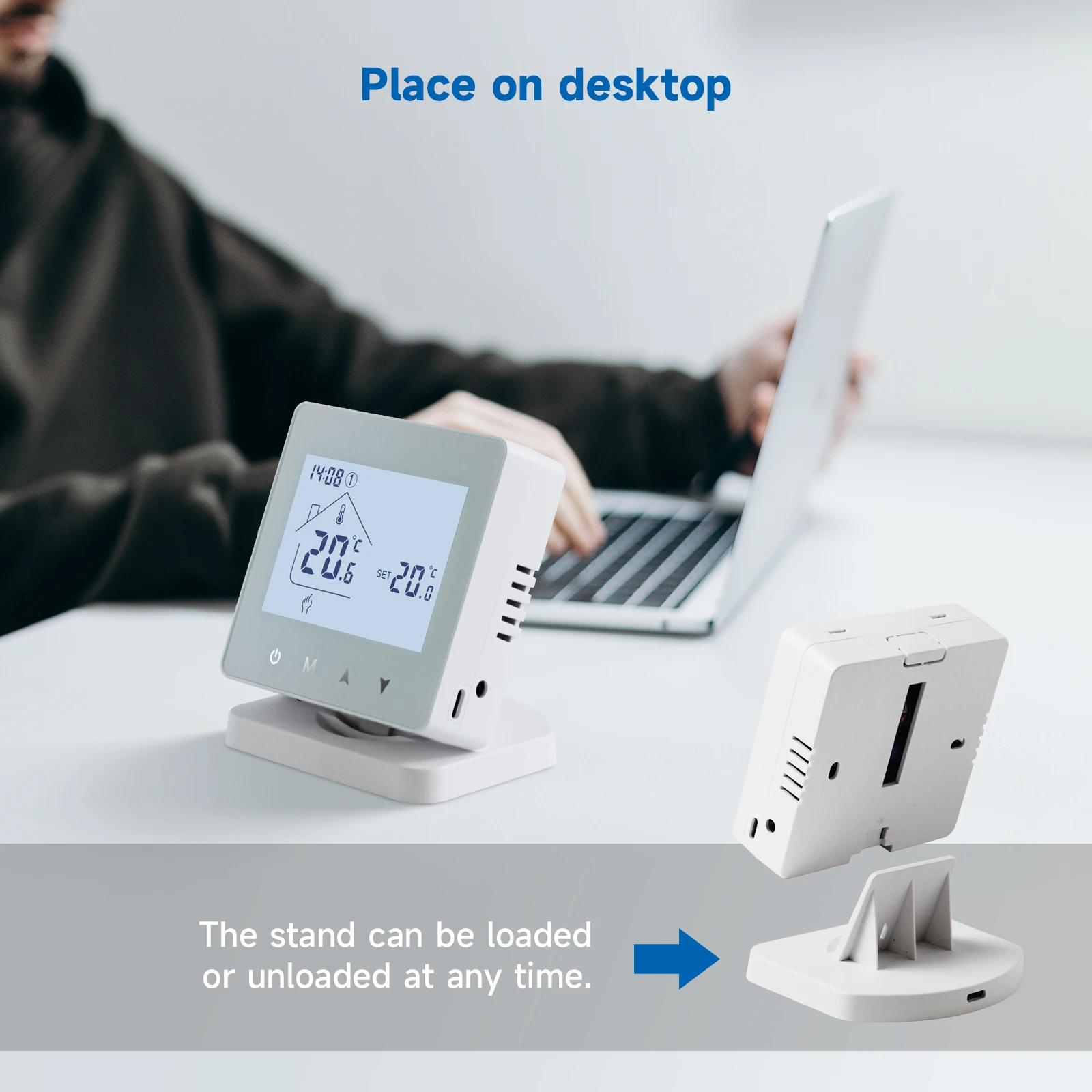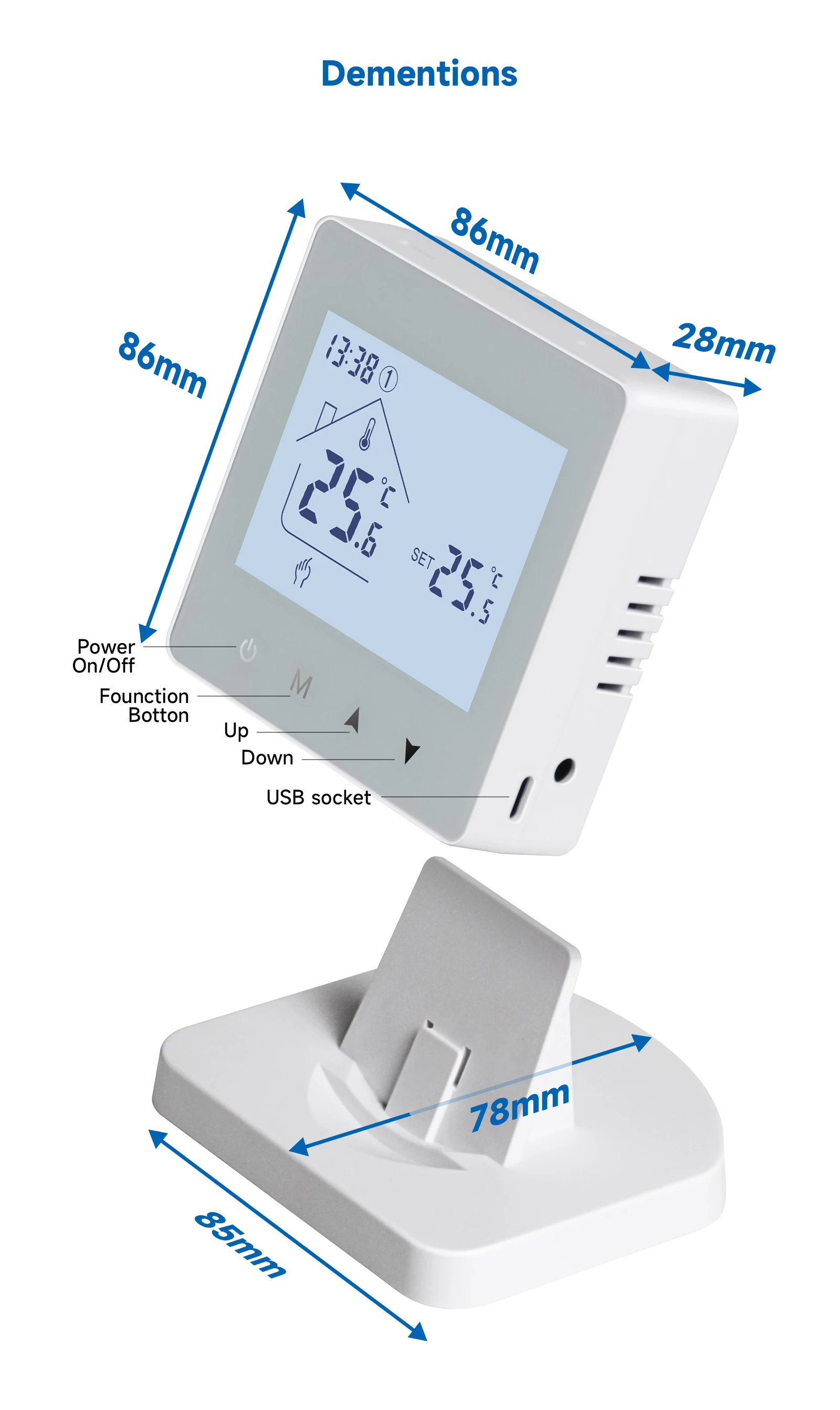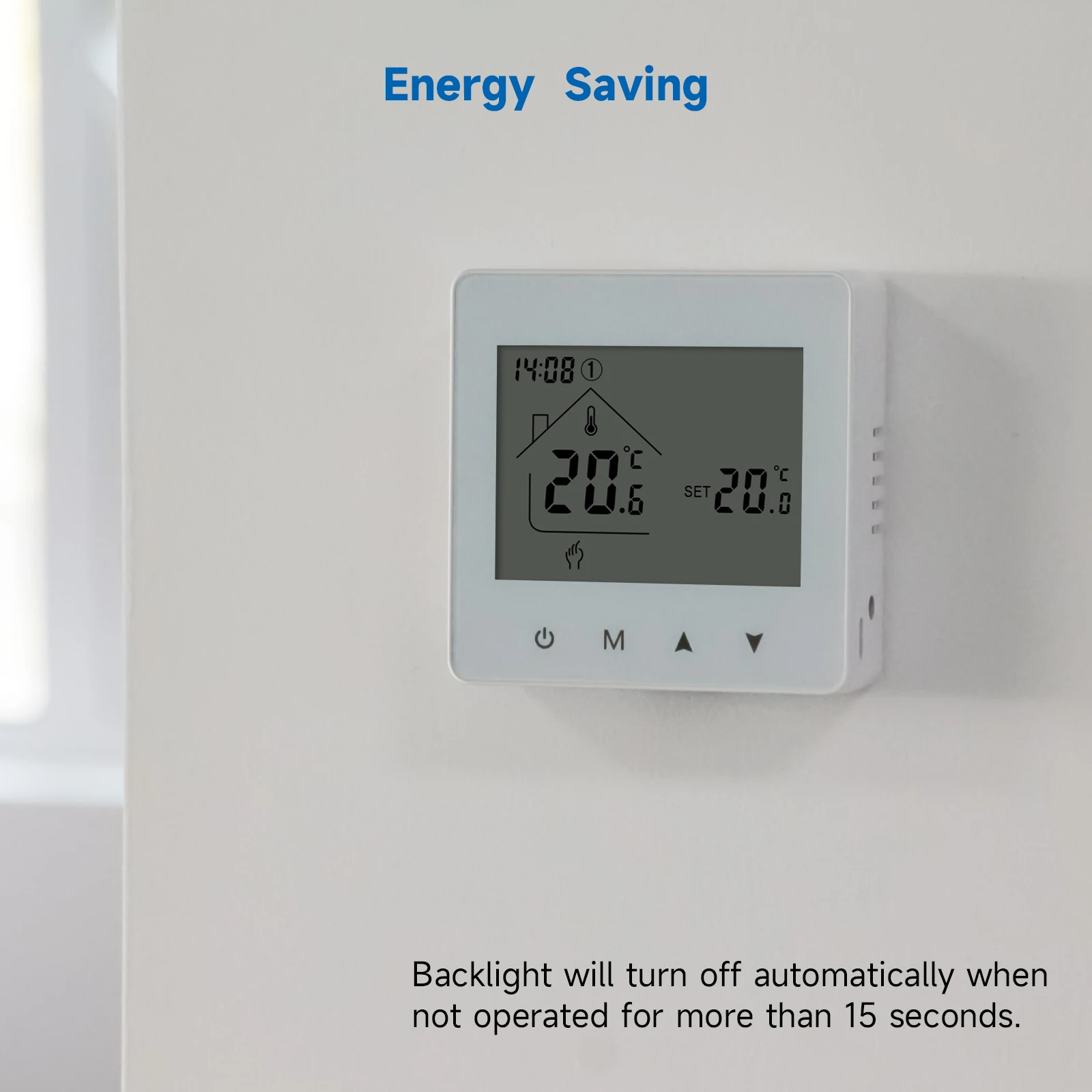 【프로그램】 5 + 2/6 + 1/7 의 3 가지 모드를 프로그래밍하여 전화 또는 수동으로 프로그래밍 할 수 있습니다. 근무일 6 시간 동안 다른 온도를 설정할 수 있습니다.