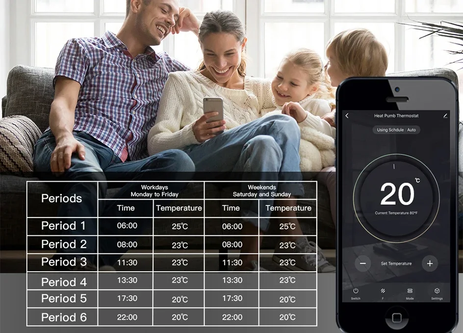 전체 자동 프로그램 또는 수동 설정 매일 6 단계의 주간 5 + 2 일 일정을 지원하여 최대한의 편의성과 편안함을 제공합니다. 전원이 꺼져있을 때 데이터 메모리.