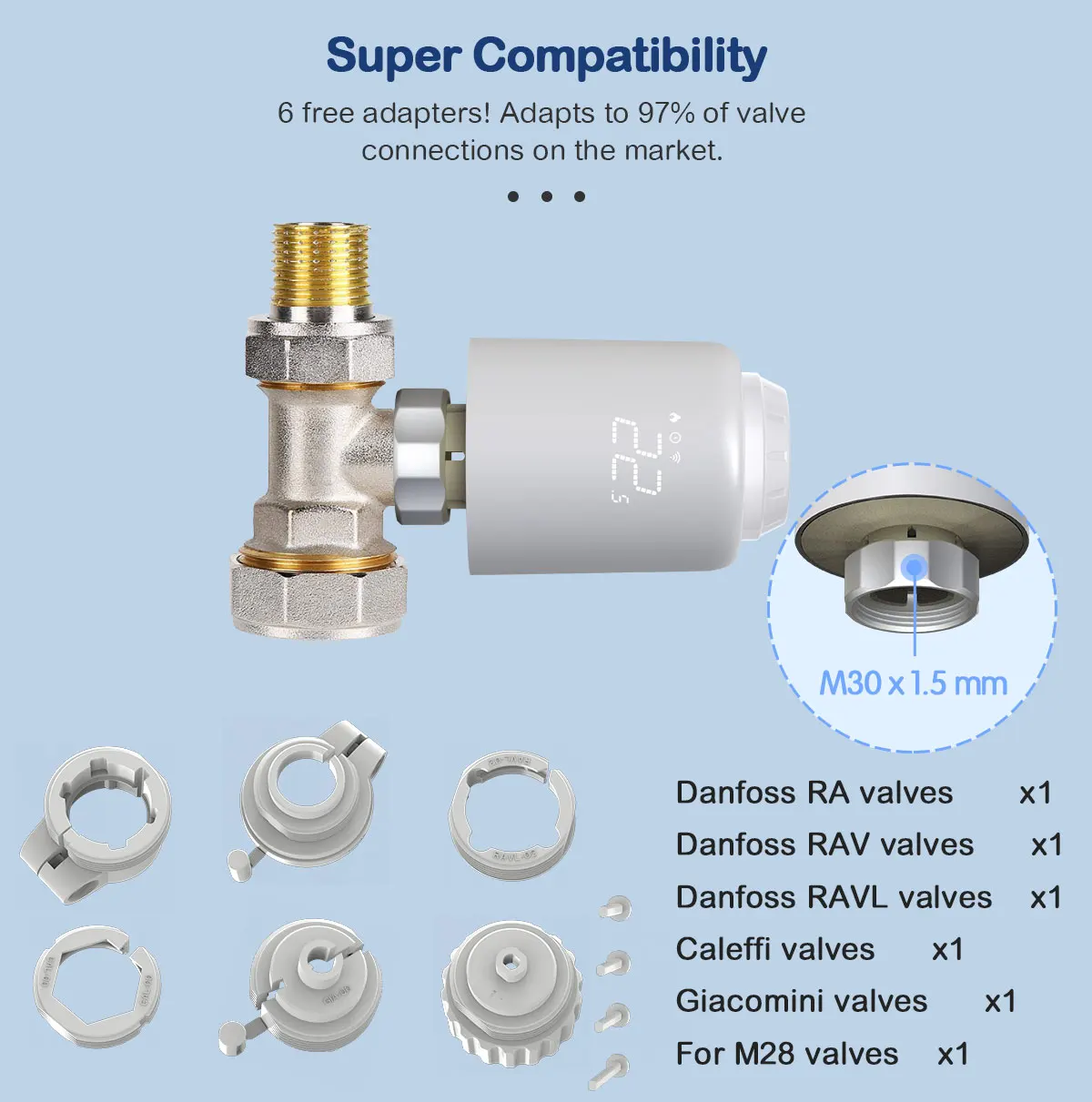 【슈퍼 호환성】일반 TRV와 비교하여 6 가지 모델의 어댑터가 제공되며 시장 히터 밸브 인터페이스의 97% 맞게 조정됩니다.