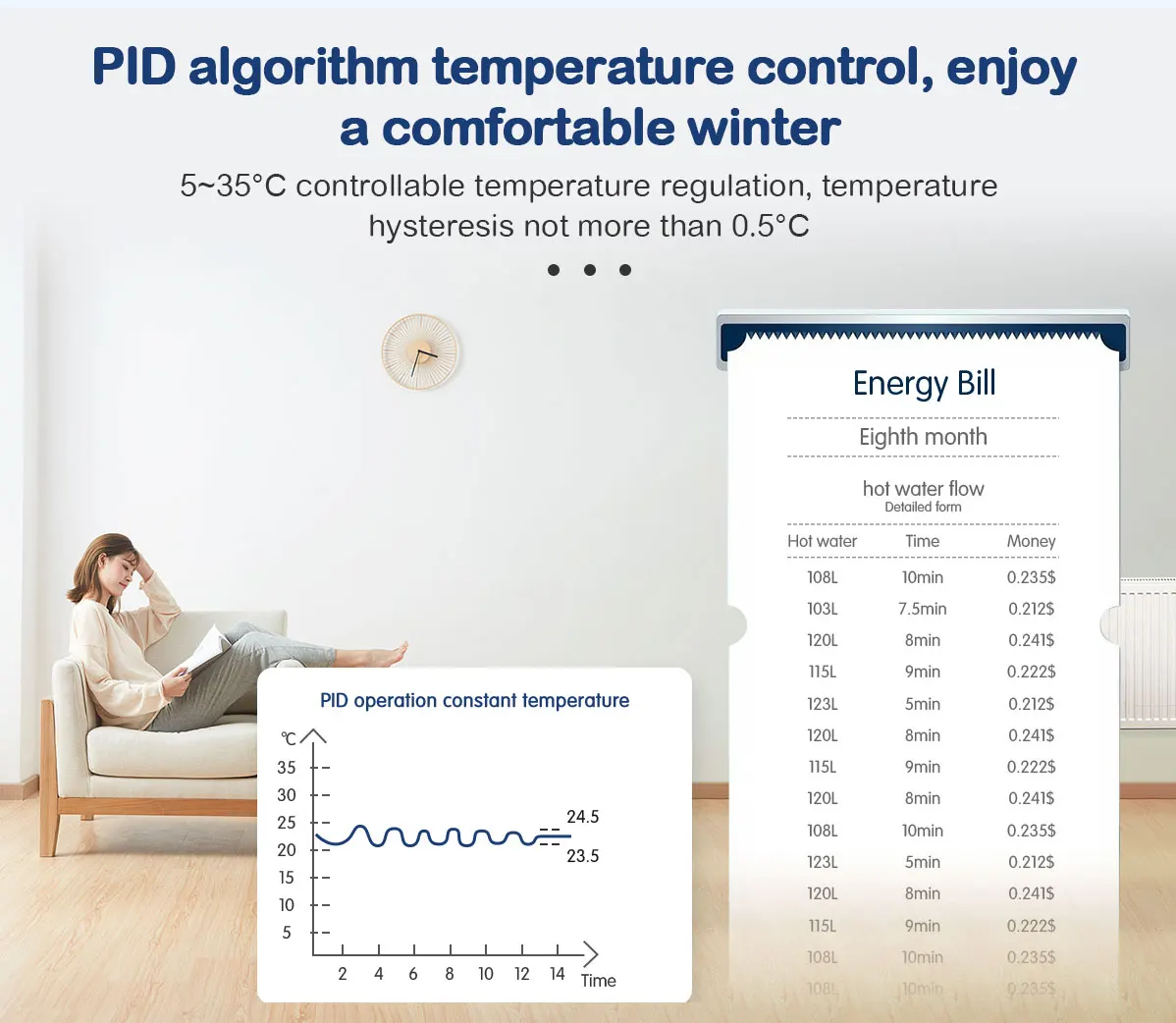 【APP 원격 제어】APP는 장치의 수동 조정보다 더 포괄적 인 기능을 지원하며, 어디에 있든 Smart Life/Tuya Smart를 다운로드하십시오. 휴대 전화/태블릿을 통해 집안의 라디에이터를 무선으로 제어 할 수 있습니다.