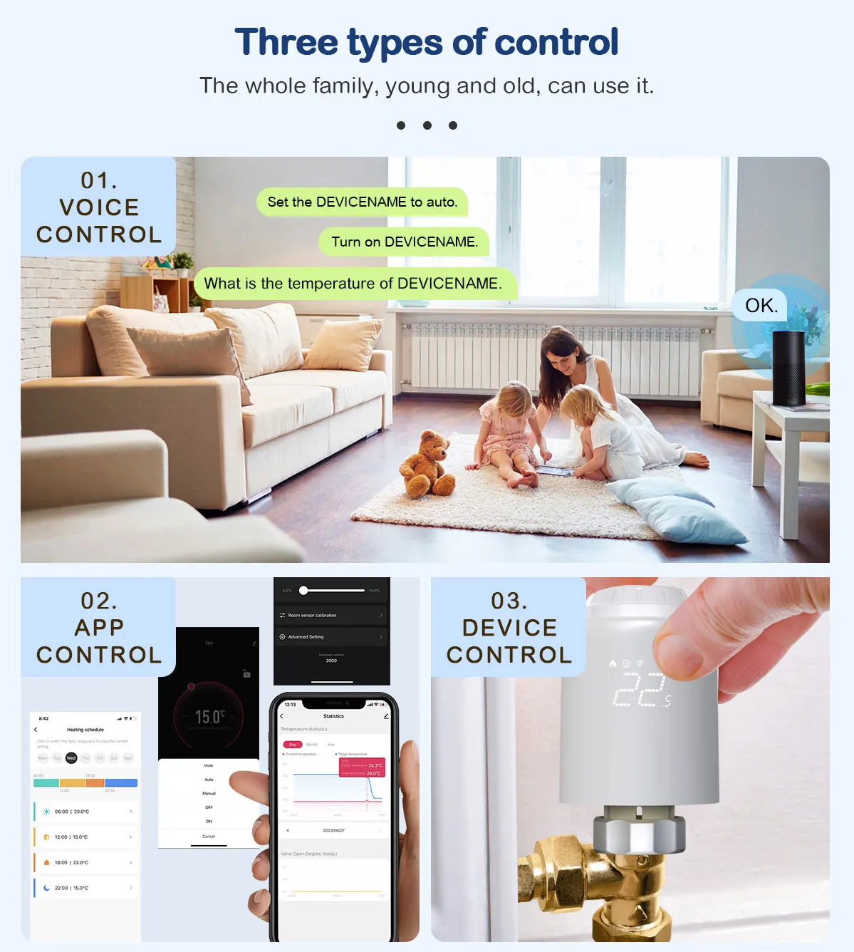 【민감한 모니터링】이 장치는 창문이 열려 있는지 여부를 지능적으로 식별하고 차가운 공기가 감지되면 밸브가 30 분 동안 자동으로 닫힙니다.