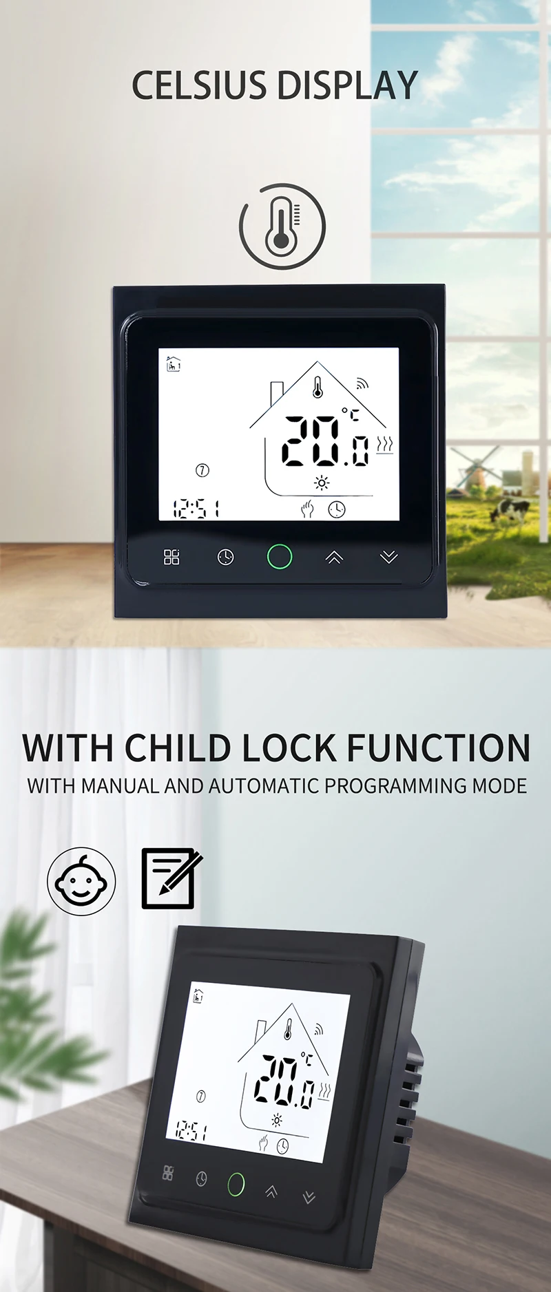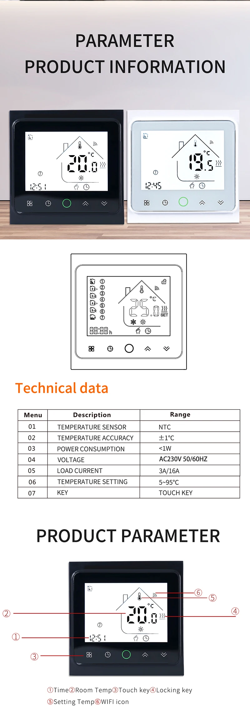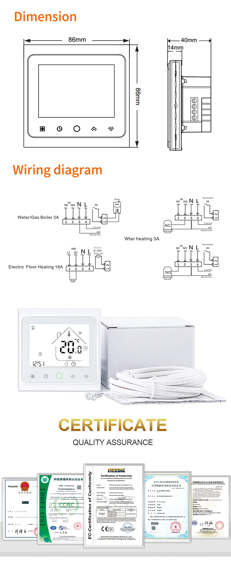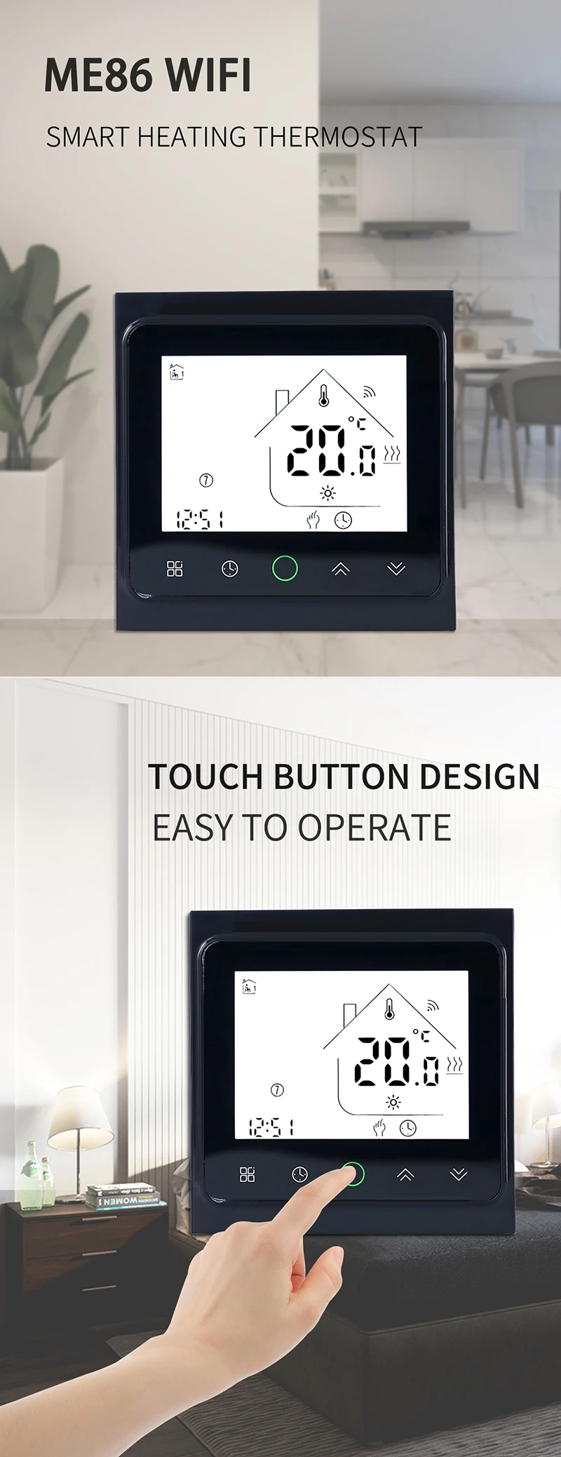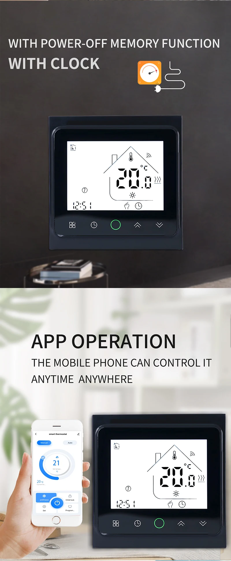 스마트 와이파이 터치 스크린 온도조절기 전기 바닥 난방 매트 와이어 케이블 하우스 워밍업 구글 앱 컨트