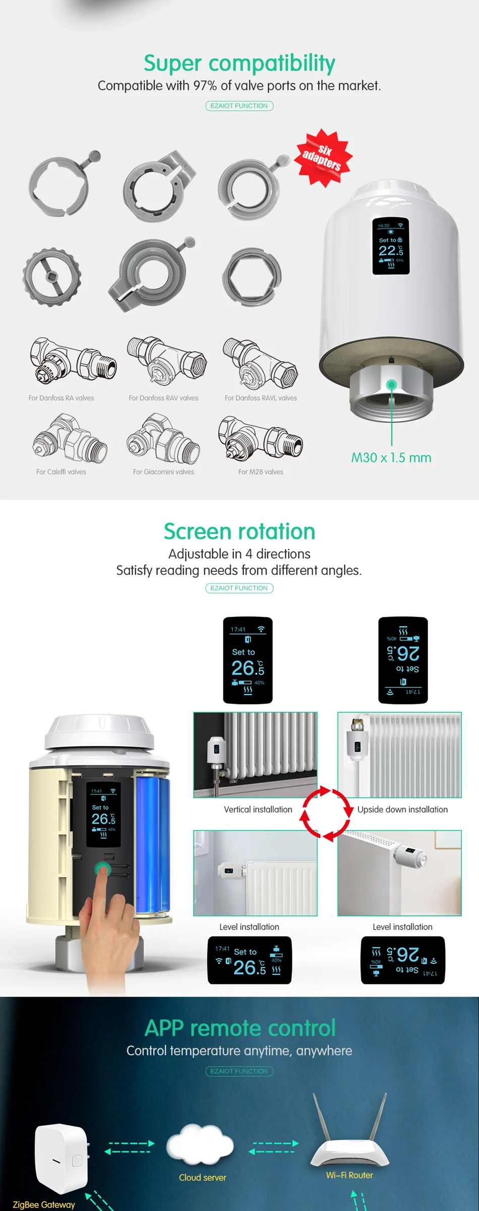 정밀한 제어를 위해 지능형 PID 알고리즘을 사용하여 TRV 및 APP에서 밸브 개방 비율을 시각적으로 확인할 수 있습니다.난방 비용의 최대 18% 절약평균 연간.