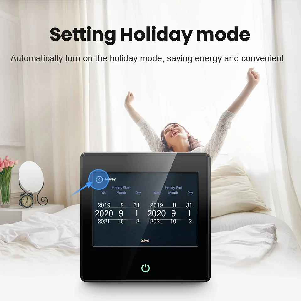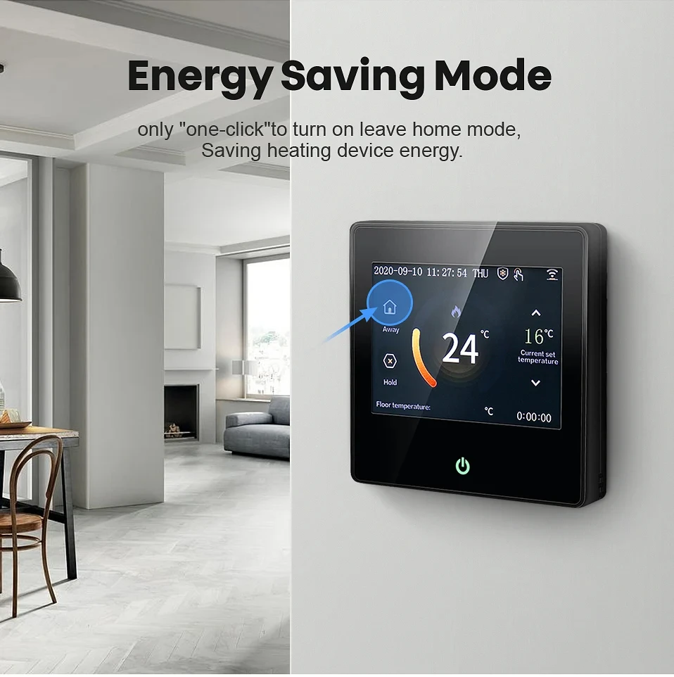 【에너지 절약 모드】 한 번의 클릭으로 에너지 절약 모드를 켜서 홈 모드를 끄고 난방 장비의 에너지 절약