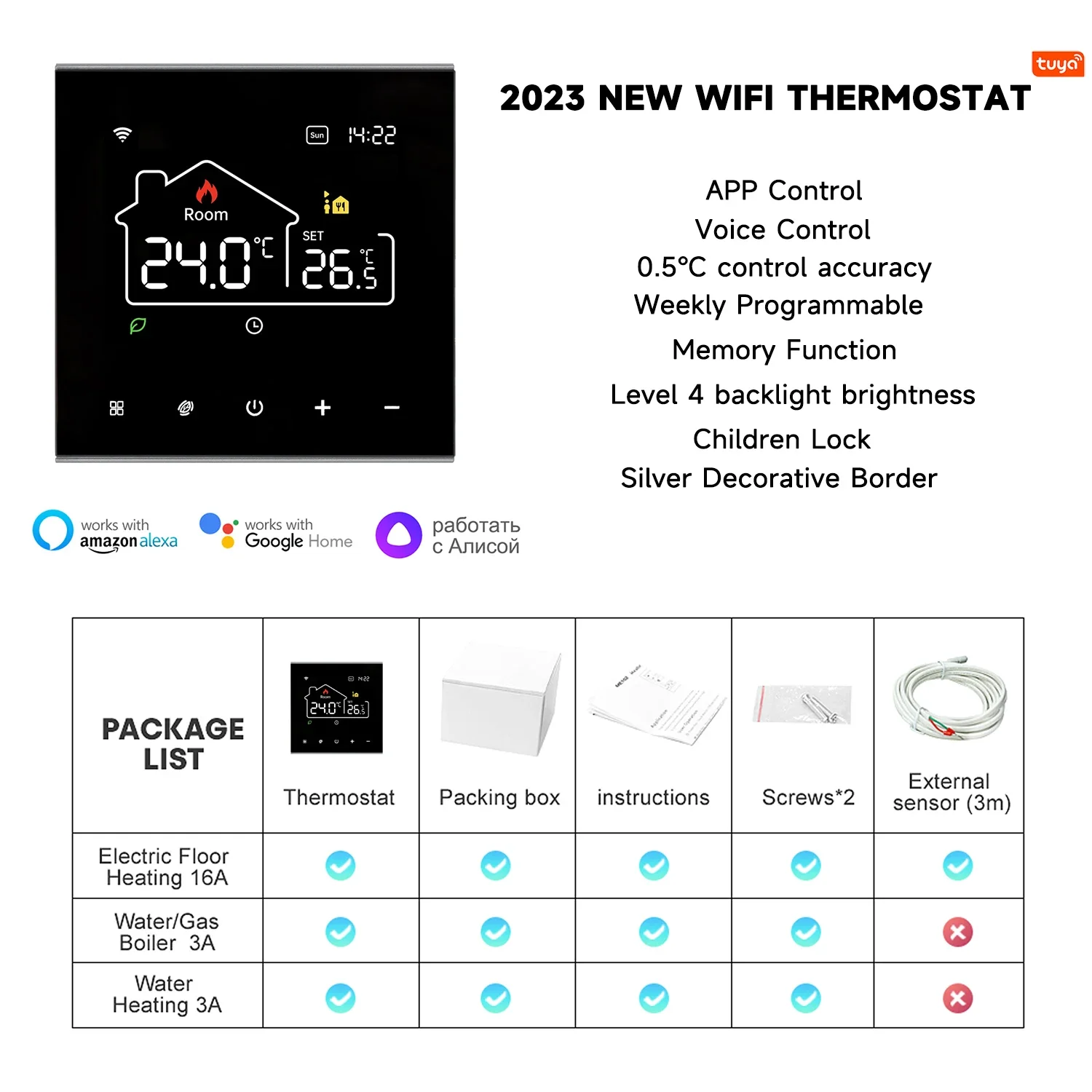 Tuya WiFi 스마트 온도 조절기 전기 난방 물 가스 보일러 온도 컨트롤러는 Alexa, Google Home, Alice와 함께 작동합니다.