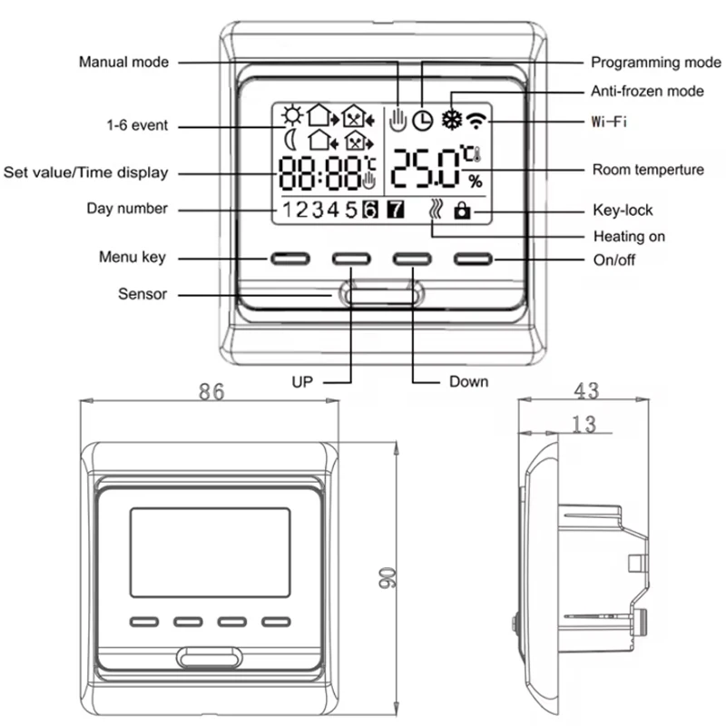 1X3 미터 외부 센서 (전기 바닥 난방 16A 온도 조절기 만 포함)