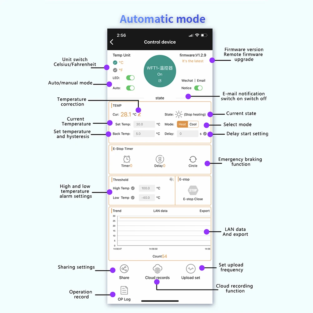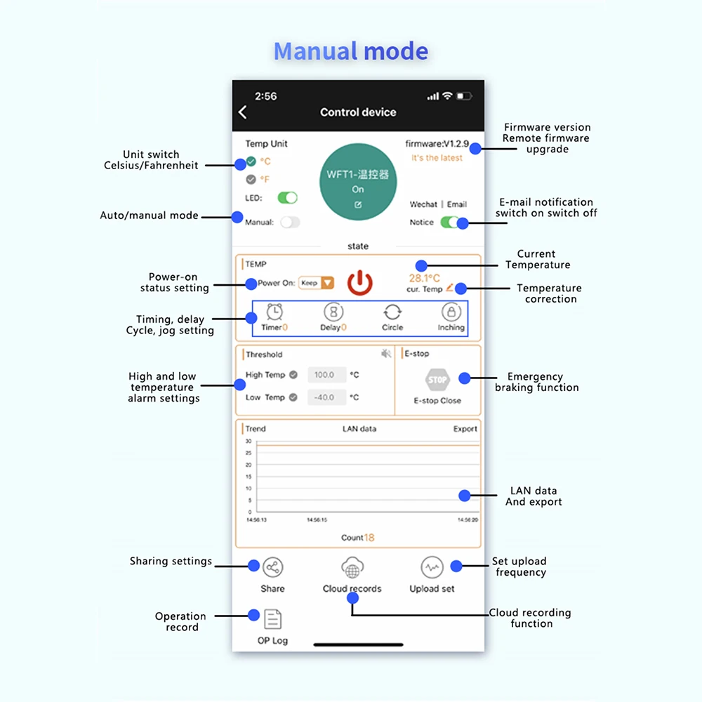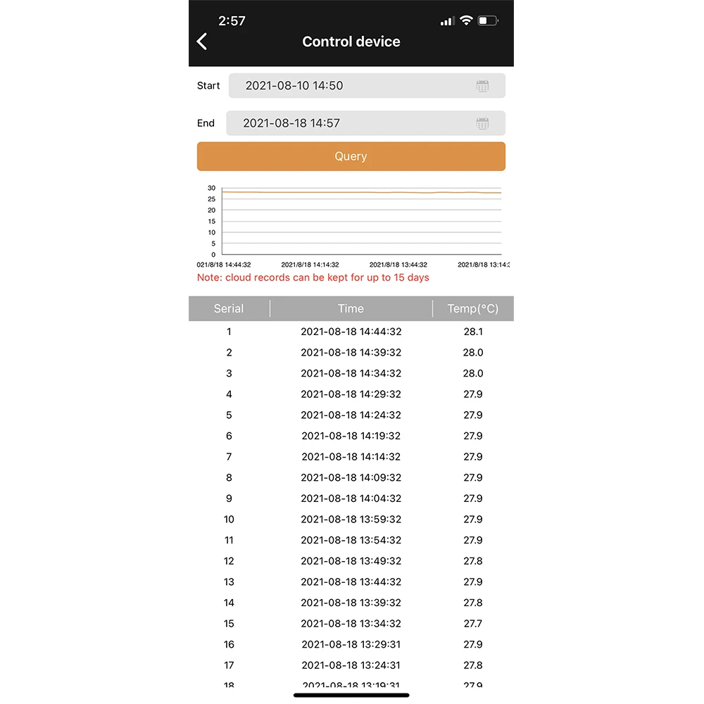 지역 네트워크는 1 초 안에 온도 데이터를 업로드합니다. "내보내기" 를 클릭하면 온도 데이터 분석을 위해 자동으로 EXCEL로 내보내집니다.
