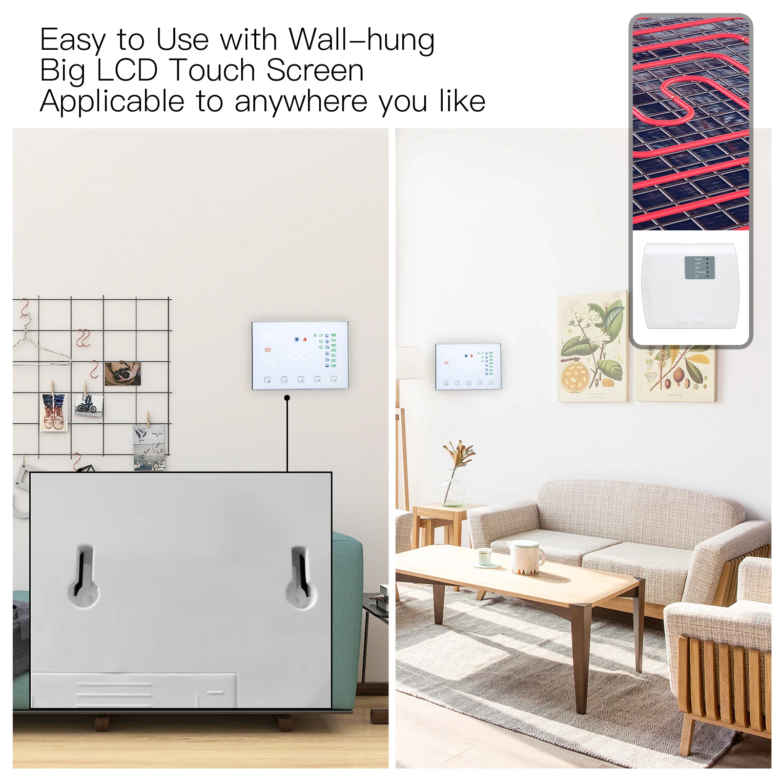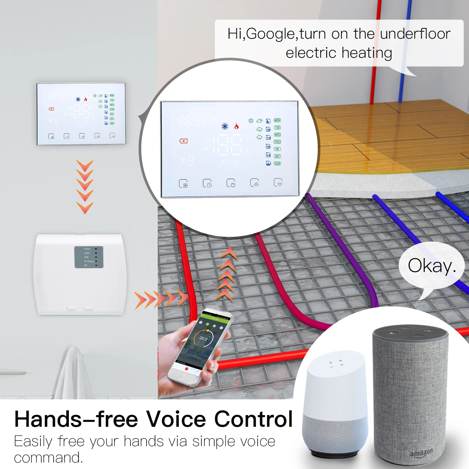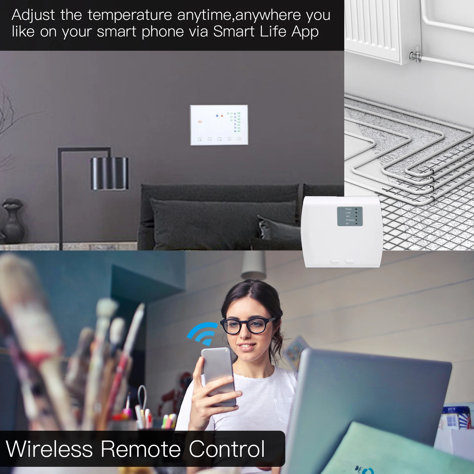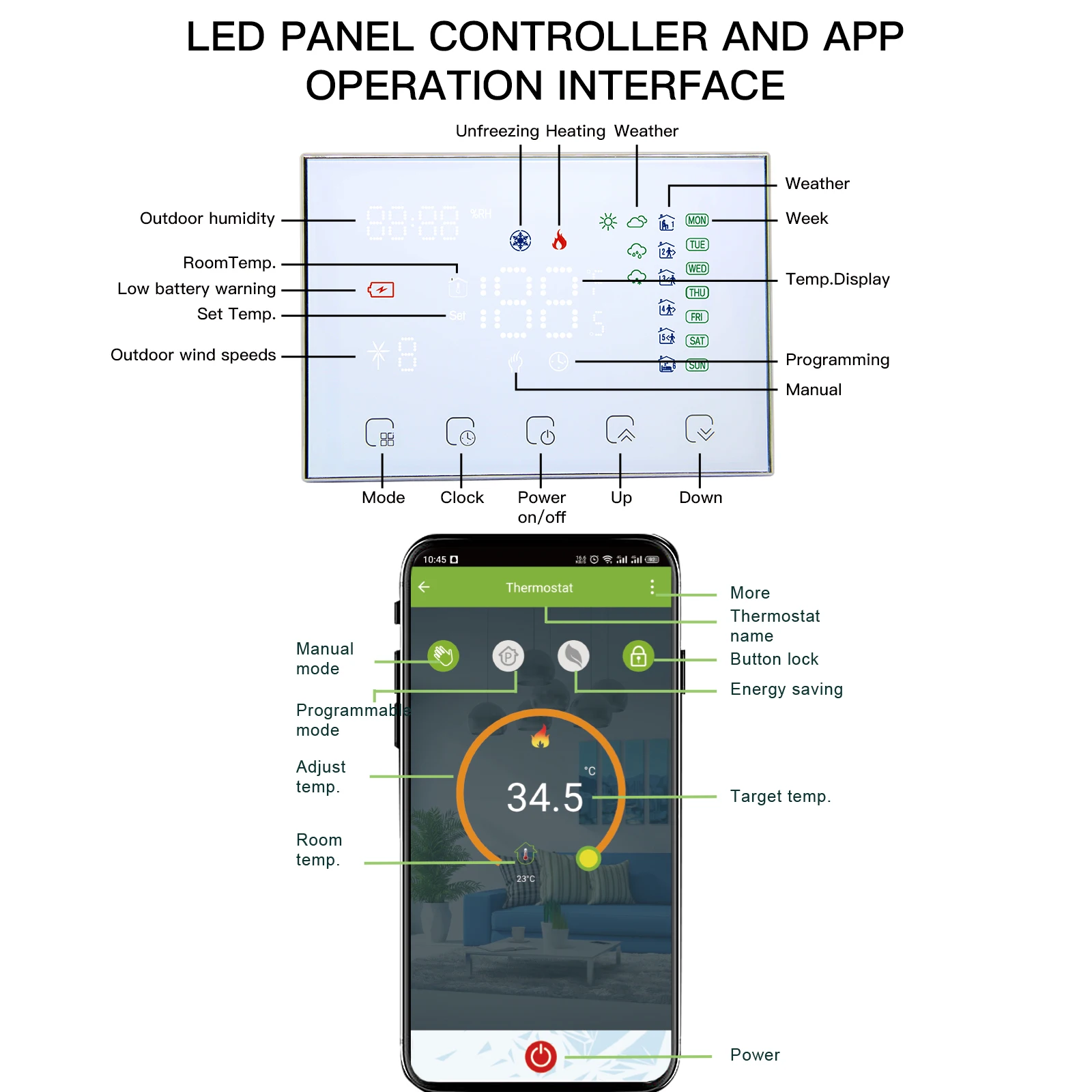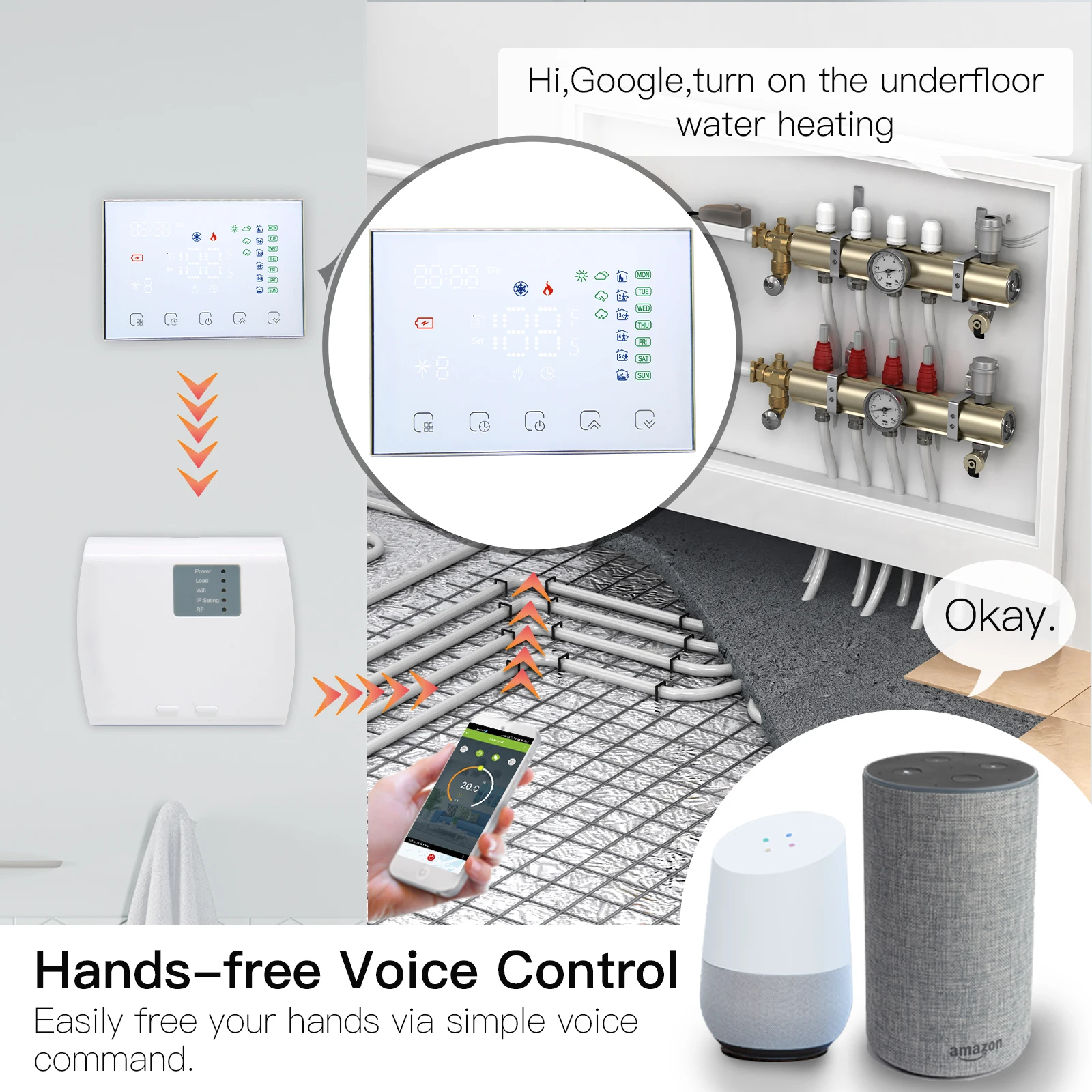3. Tuya Smart APP와 호환 가능: Tuya Smart APP를 통해 어디에 있든 상관없이 집 난방 시스템을 무선으로 원격으로 제어하여 더 나은 생활 환경을 위해 실내 온도를 적시에 모니터링합니다. 잠금 기능과 함께 아이들이 변경할 수 없습니다. 또한 Alexa,Google Home 및 Yandex Alice를 통한 음성 제어조차도 쉬운 제어 방법을 제공합니다.