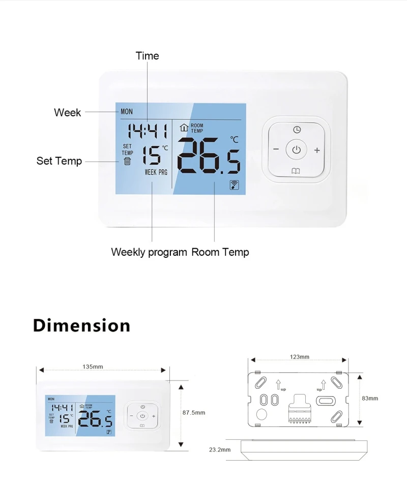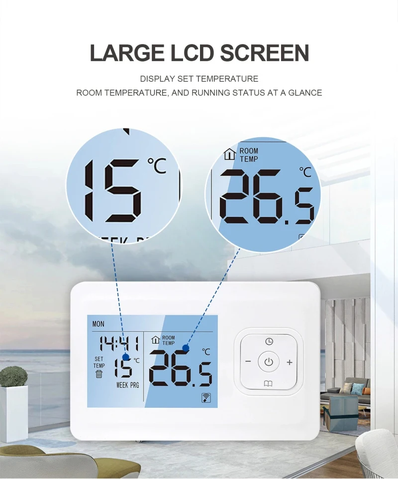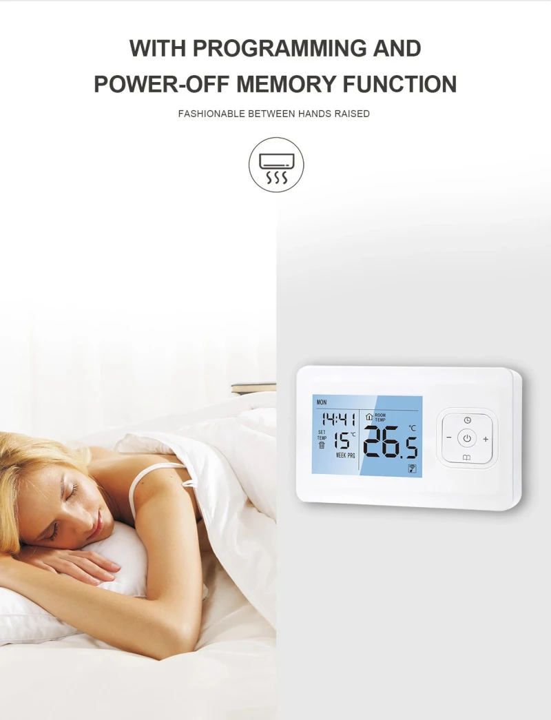 [주간 프로그램 가능] 온도 조절기는 매일 6 가지 시간 모드로 다른 온도 설정을 지원합니다.
